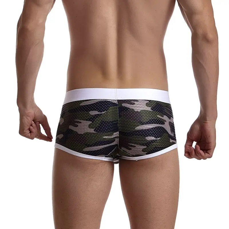 Трусы-боксеры мужские, сетчатые, камуфляжные, зеленые, сексуальное нижнее белье