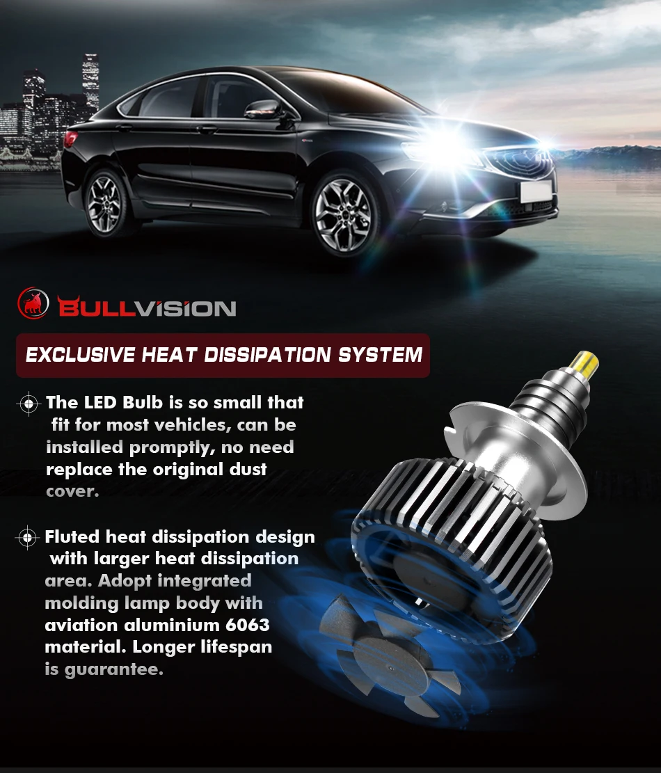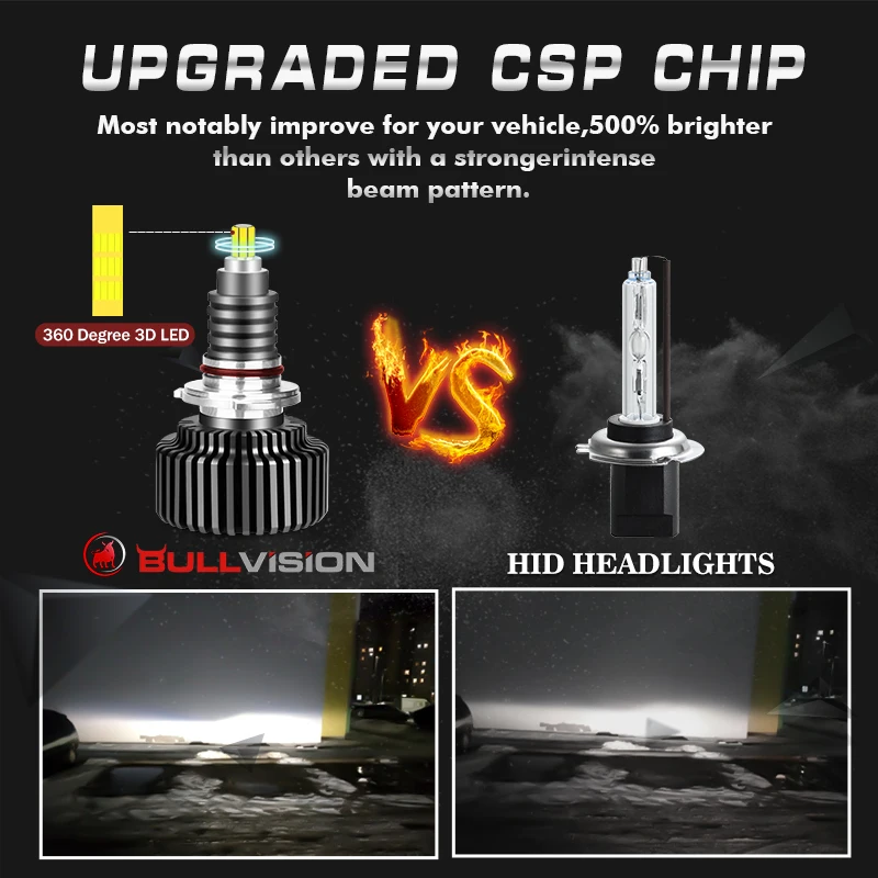 Светодиодсветодиодный лампы Bullvision 90 Вт 9012HIR2 H7 2 шт. H11 H1 3D CSP для автомобильных фар H9 H8 9005 9006 автомобильные аксессуары 12 В 6500 лм K для автомобиля