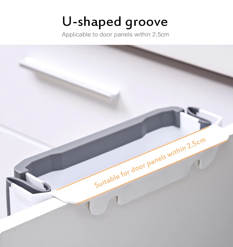 Мусорные баки можно вешать на кухонные двери, двери шкафа, двери кладовой, ящики, автомобили или где-либо еще. U-образный паз дизайн подходит для дверной панели толщиной менее 2,5 см/0,8 дюйма