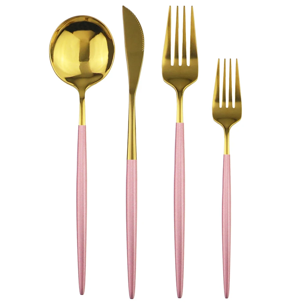 4 шт., набор посуды розового и золотого цвета, набор посуды из нержавеющей стали, набор столовых приборов для кухни, набор серебряных изделий