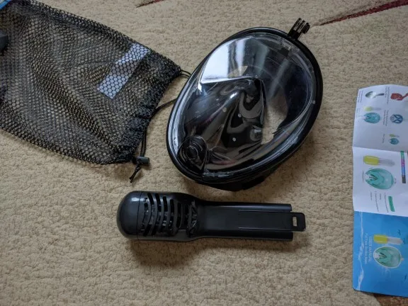 Received in 9 days. Я еще не пробовал. Упаковка-это просто пластиковый пузырчатый пакет без дополнительной защиты, хотя маска прибыла идеально. Он поставляется с двумя чехлами для ушей, гайкой для держателя камеры, И резиновая запасная стойкость, чтобы положить в соединение трубки с маской (что я надеюсь, что они будут длиться, потому что, если со временем они выйдут из строя, вам придется использовать что-то вроде ленты тефлона ..). Everything Seems good quality. Эластичные ленты зафиксированы сверху и плотно прилегают, растягивая оба снизу (хорошо сохнет, мокрый, я не знаю, ослабят ли они). Система дыхания такая: часть резины отделяет нос и рот от остальной части маски, при вдохновении два боковых языка резины открываются, а воздух попадает в область глаз (который находится в трубе), И когда он истекает, вы открываете язык в передней части рта, и воздух выходит прямо снаружи (поэтому область глаз не должна быть размыта). За 11,37 евро очень хорошо.