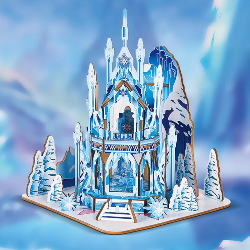 3D пазл Ледяной замок, лазерная резка, деревянные наклейки ручной работы, детские образовательные игрушки с 68 частями