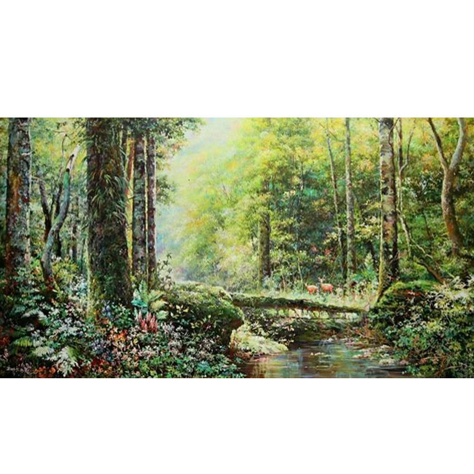 Полностью квадратная круглая Алмазная вышивка пейзаж лес Лось 5d diy алмазная живопись природный пейзаж Стразы мозаика