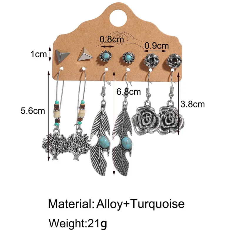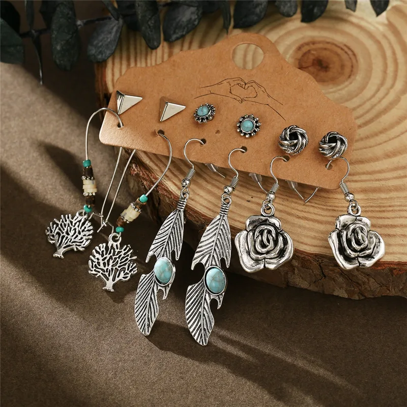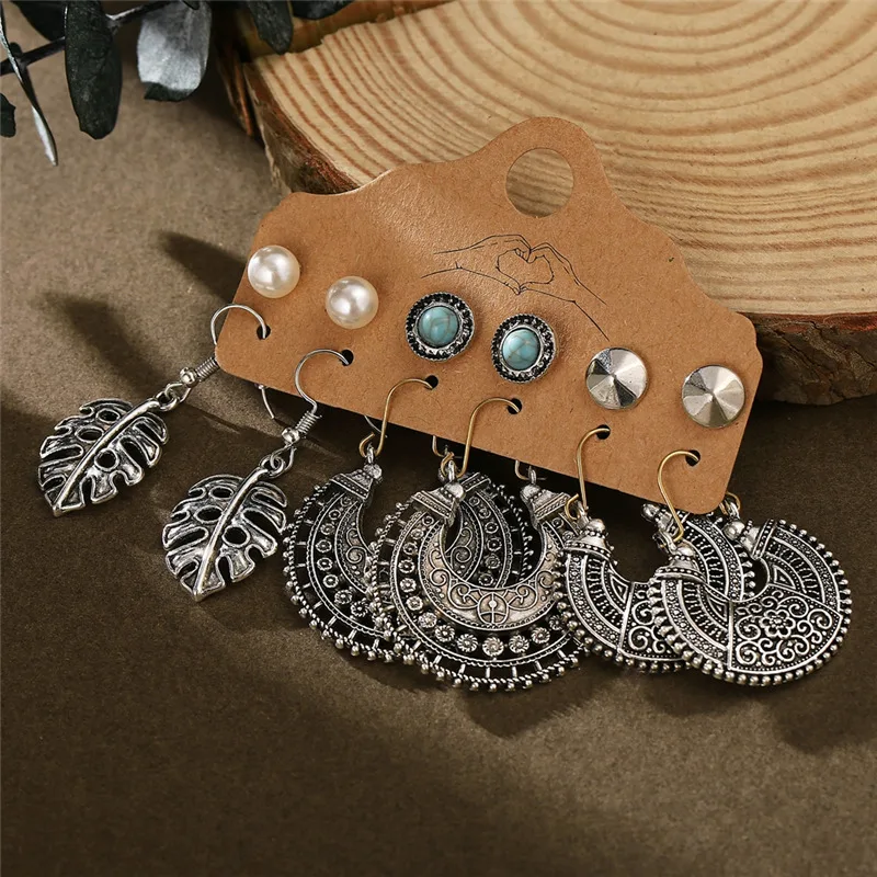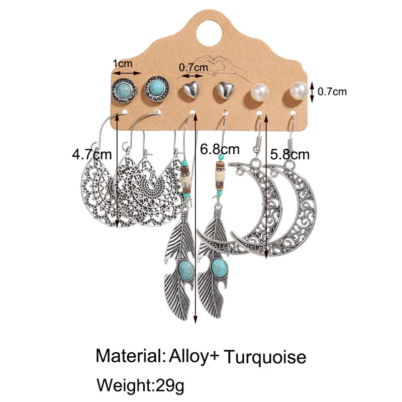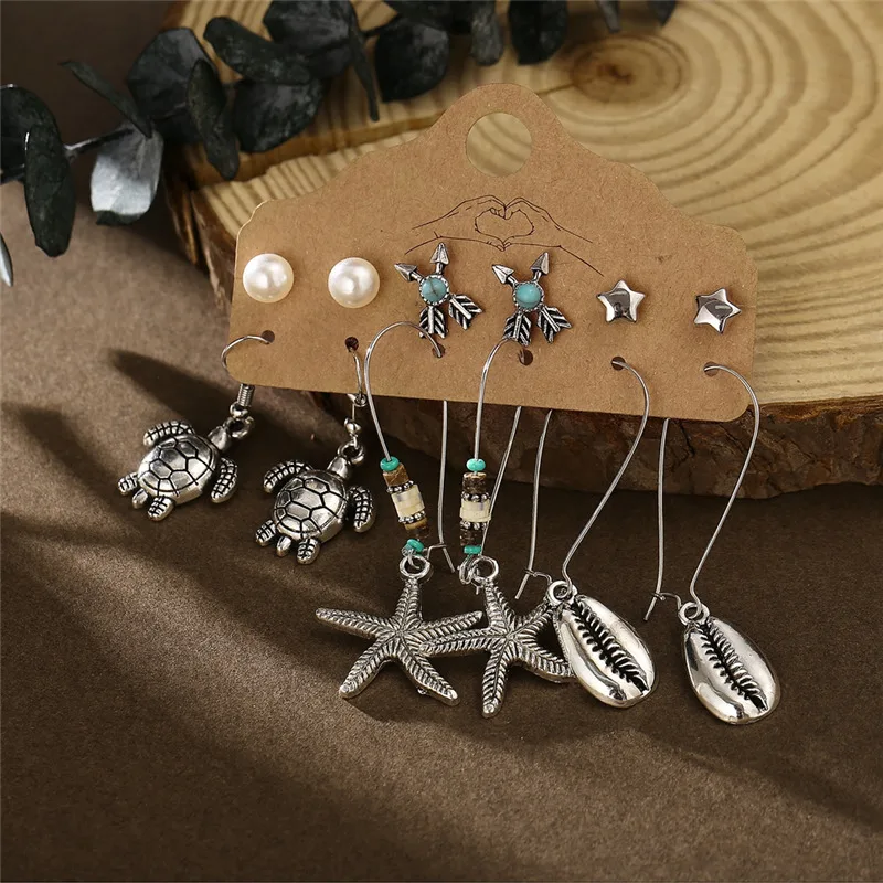 Серьги в стиле бохо, винтажный стиль, Ретро стиль, античное солнце, луна, геометрические серьги, набор, перо, слон, черепаха, морская звезда, ракушка, висячие серьги