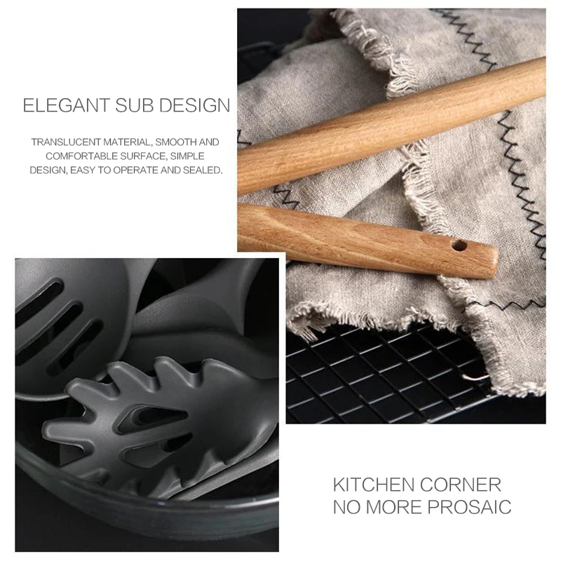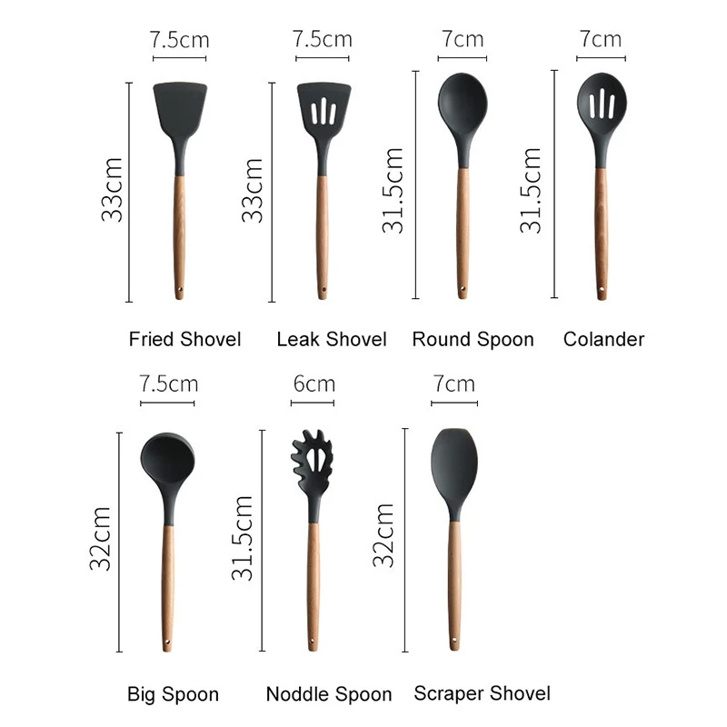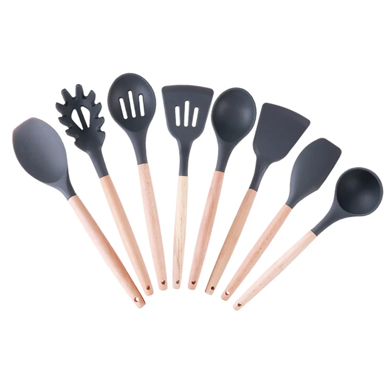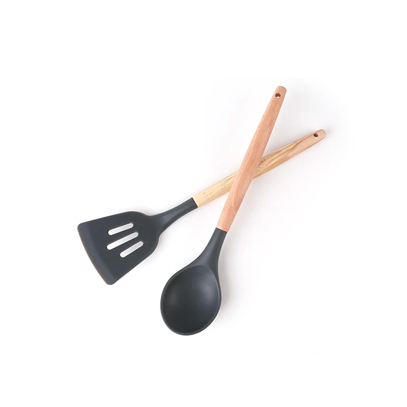 Силиконовый набор кухонных принадлежностей, набор кухонных принадлежностей, лопатка черпак, ложка для супа с деревянной ручкой, специальная термостойкая конструкция