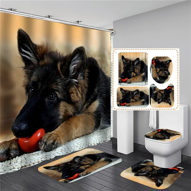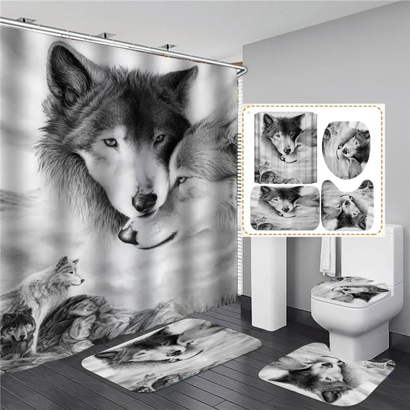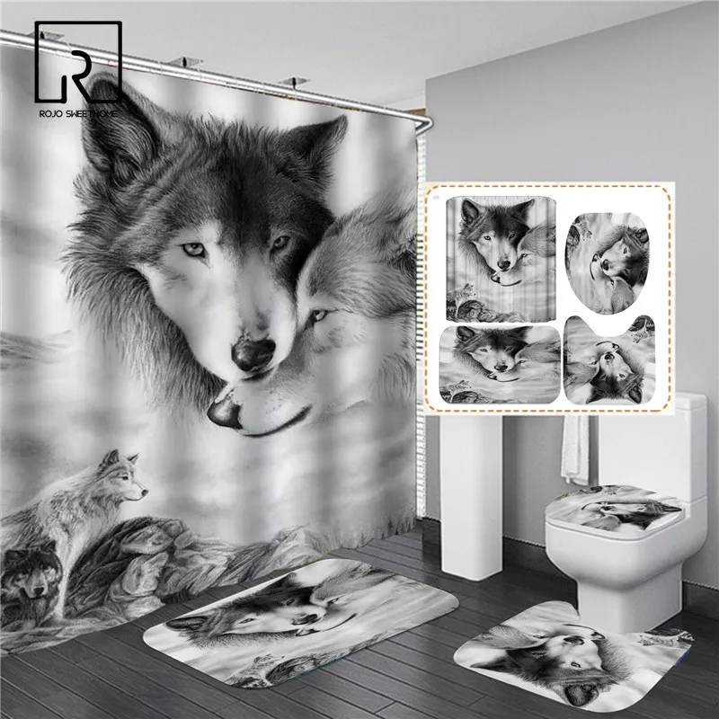 Набор занавесок для душа с принтом Белого Волка, водонепроницаемый декор для ванной комнаты с противоскользящей крышкой для унитаза, фланелевый кухонный коврик, коврик, Придверный коврик