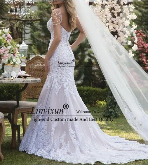 Уникальное кружевное свадебное платье-Русалка Vestido de noiva, Элегантное свадебное платье на бретелях-спагетти с жемчугом, 2020