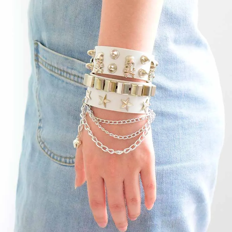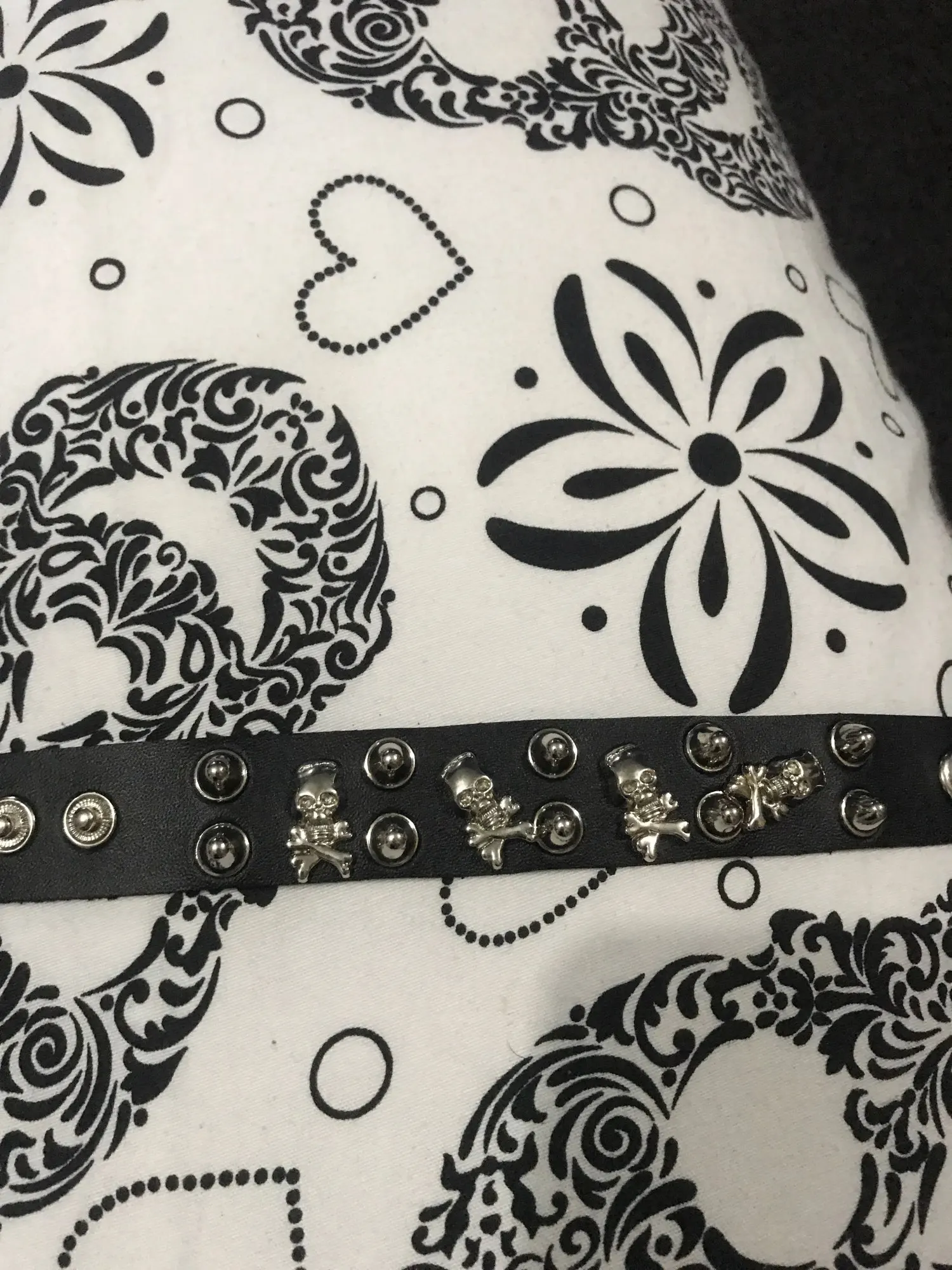 Очень красивый маленький браслет в стиле панк/готика. Качество очень хорошее по цене. Ремешок из мягкой кожи, цепочки, шпильки и вещи немного дешевые, но все равно хороши по невероятно низкой цене. Ремешок имеет 3 разных размера, поэтому он обязательно подойдет вам. Ремешок поставляется с раздражающим колокольчиком, прикрепленным к цепочке, но его легко снять. Я настоятельно рекомендую его по цене