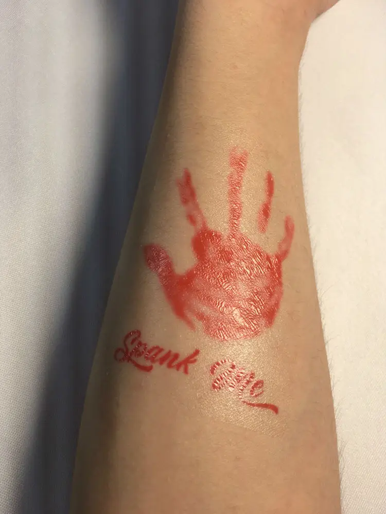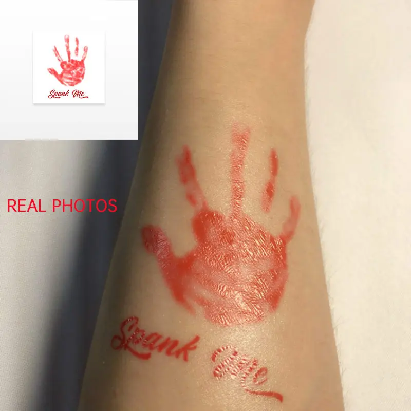 Описание: 1. Красные Руки со шпанком пишут Временные татуировки. Положите его там, где вы хотите, чтобы вы были спали, наслаждайтесь вашим сексуальным временем! 2. Временные татуировки сделаны из медицинского материала, каждый из которых длится около 3 дней. 3. Каждая Татуировка измеряет около 5X 8 см(1,96x3,14 дюйма). 4. Идеально поместите татуировку на безмасляную, безволосую кожу, где ваша кожа не растягивается! 5. Для удаления: нанесите татуировку с помощью протирающего спирта или детского масла и подождите 10 секунд, затем аккуратно и повторно протрите спиртом или маслом для ребенка, пока не удалите.