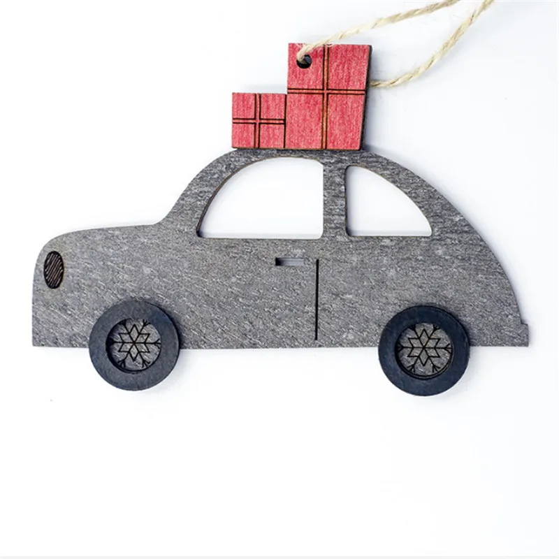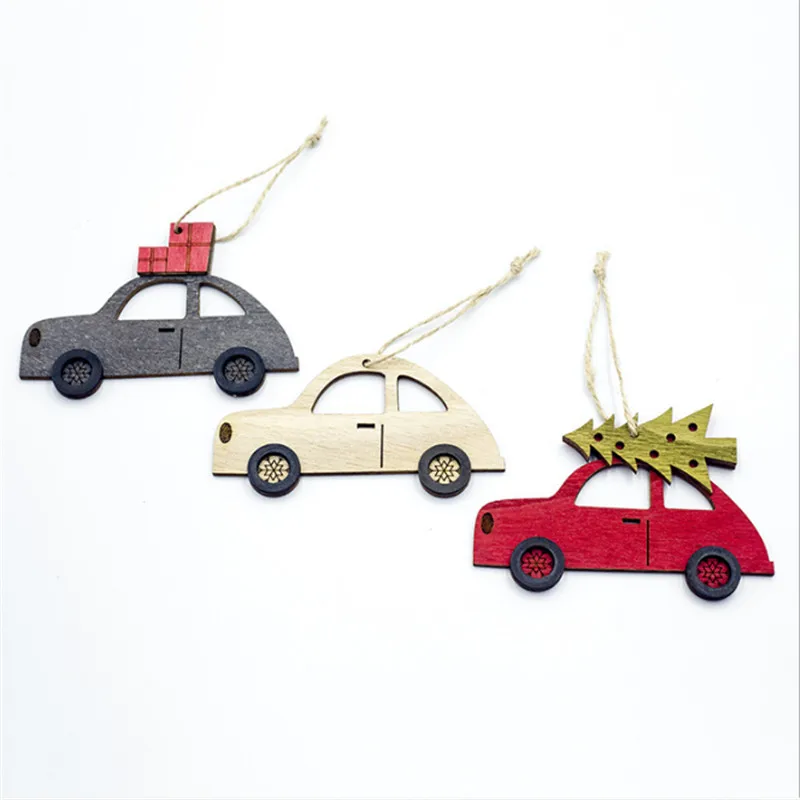Деревянная Раскрашенная разноцветная елка в виде автомобиля, подвесные украшения для дома, детские игрушки, подарок на Рождество, Новый год