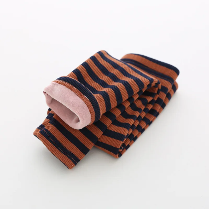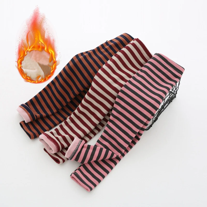 Леггинсы для девочек, зимние, теплые, плотные, обтягивающие, в полоску