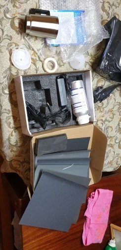 Very fast shipping. Через 2 дня он был у меня дома. Результат впечатляющий. Я также должен сказать, что ленты, которые приходят в комплекте, дерьмо, но за такую цену вы не можете требовать много. Я полировал фары с хорошими и идеальными листами.