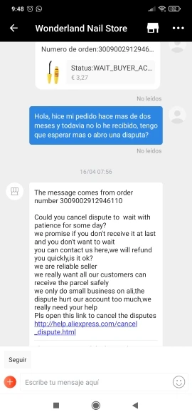 Продавец принял прием заказа без него, я ждал больше месяца после открытия спора и отмены по запросу его, и я до сих пор ничего не получил