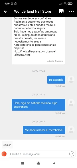 Жаль, что я не советую продавцу не отправлять ни товаров, ни возврата, ни ответа на сообщение.