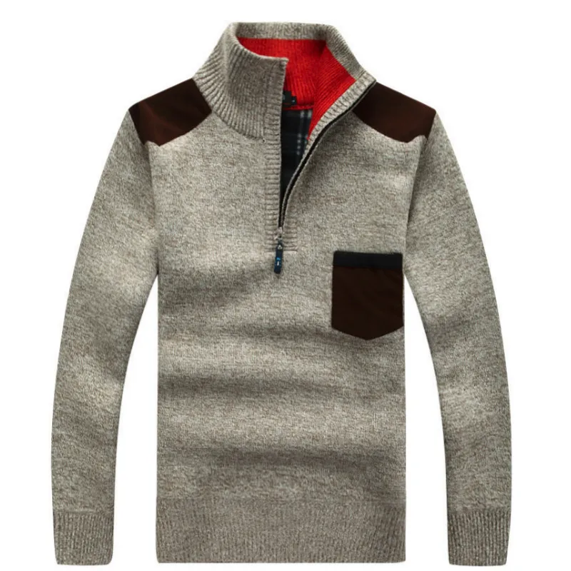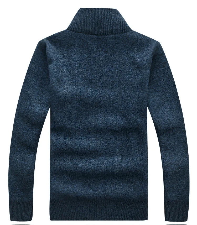Зимний мужской свитер с воротником-хомутом, флисовый вязаный шерстяной пуловер на молнии, Повседневная плотная одежда с длинным рукавом и карманами для мужчин на осень