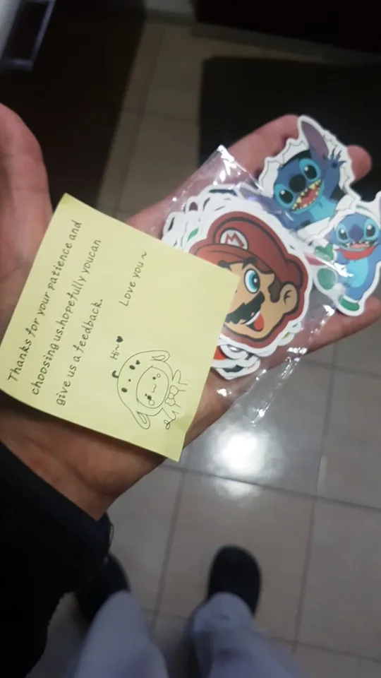 Довольно быстрая доставка, прибыл идеально, много очень разнообразных наклеек и ни больших, ни маленьких размеров, это идеально, очень красиво и красочно.
