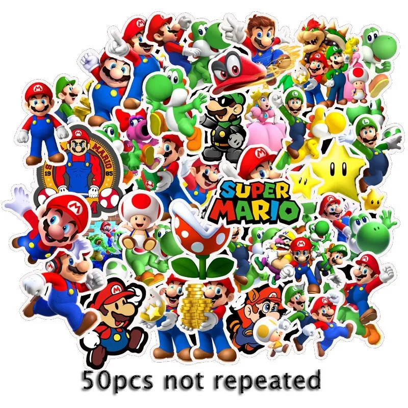 50 шт. супер наклейки с изображением Марио для стайлинга автомобилей велосипед мотоцикл для мобильных устройств на путешествия Чемодан Прохладный забавные стикеры JDM наклейка