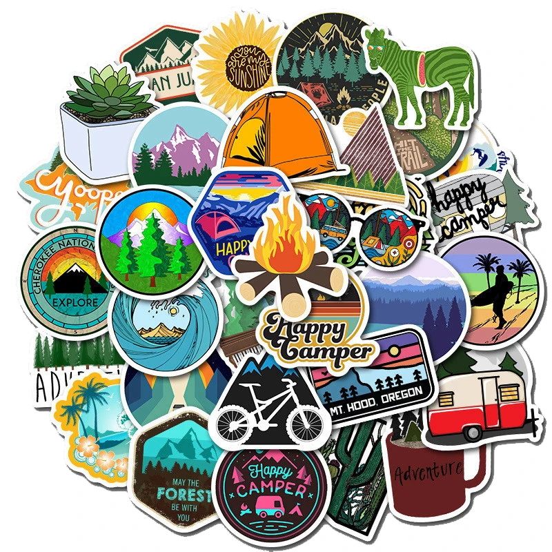 Водостойкая Наклейка 50, шт.пакет, для кемпинга, наклейки с пейзаже...