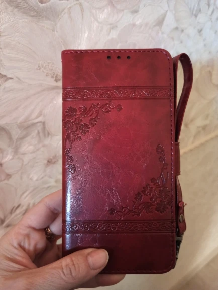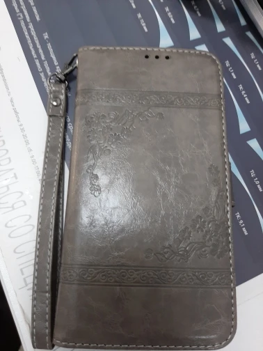 Чехлом довольна - прошит аккуратно, ремешок на карабинчике- можно отцепить, в руке приятно держать, цвет соответствует описанию.