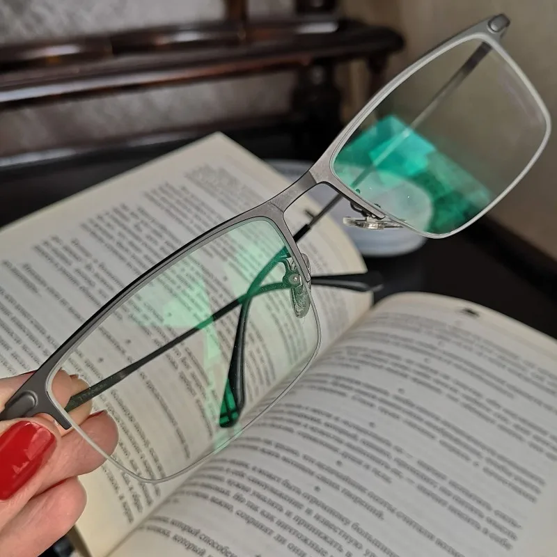 Отличный магазин с фабричным качеством очков. Заказ всегда выполнен идеально и соответствует требованиям рецепта. Оправа облегченная, титановая, полуободковая. Носоупоры регулируются, силиконовые. Линзы имеют защиту от компьютерного излучения. На лице очки сидят комфортно, нет давления на переносицу и уши. В комплекте идёт очечник, протирка, отвёртка, силиконовые носоупоры. Рекомендую смело магазин и товар.
