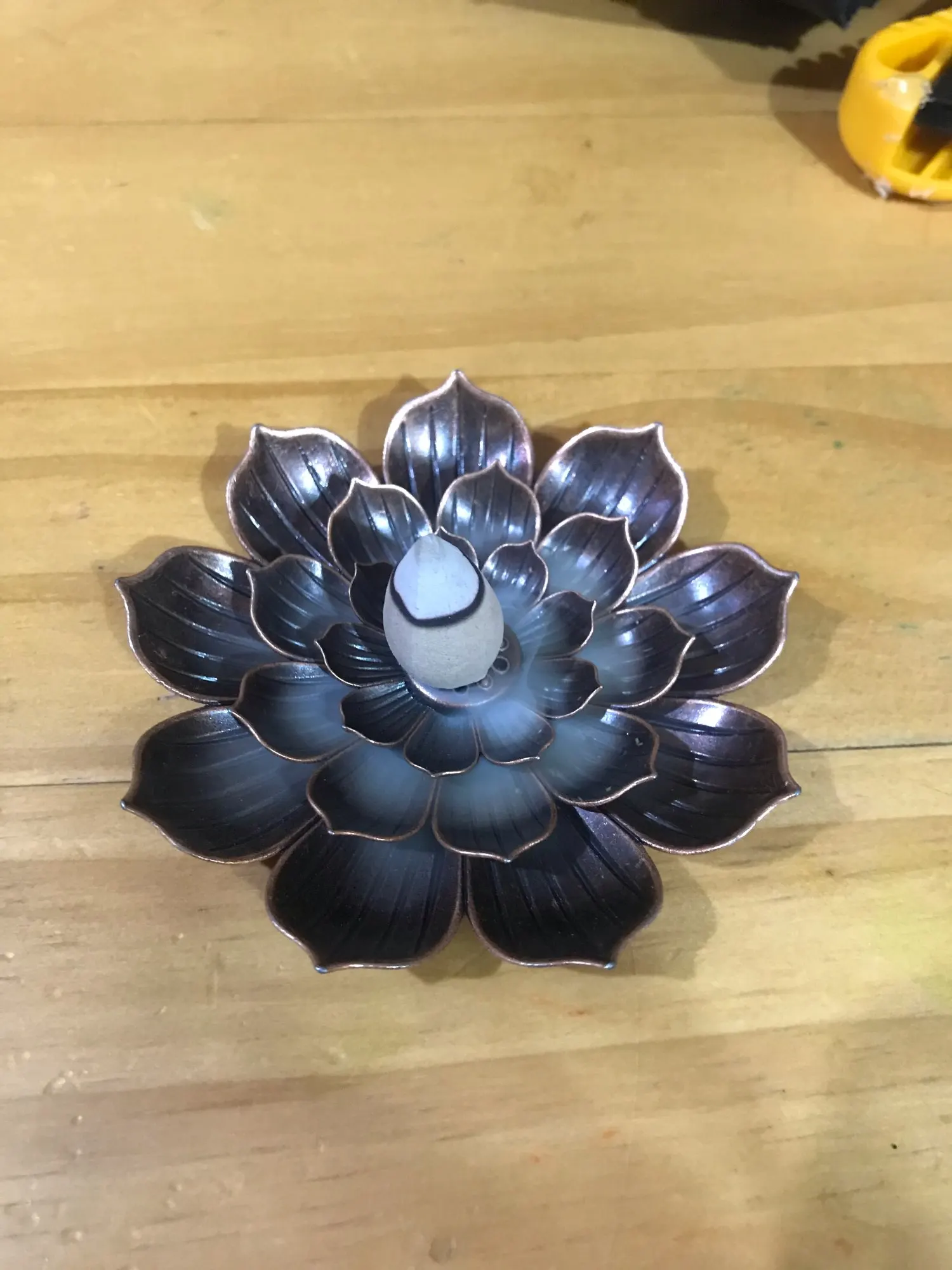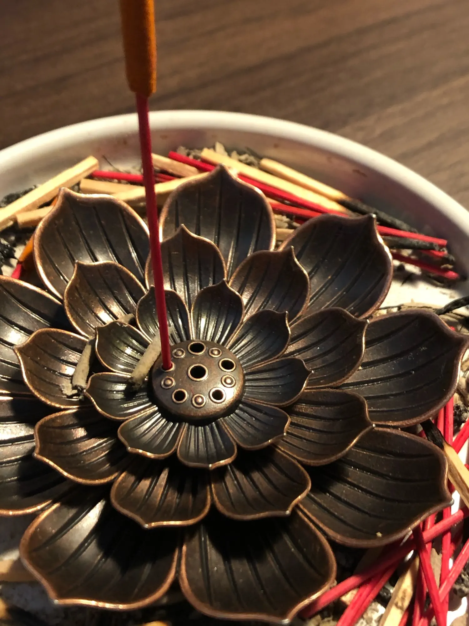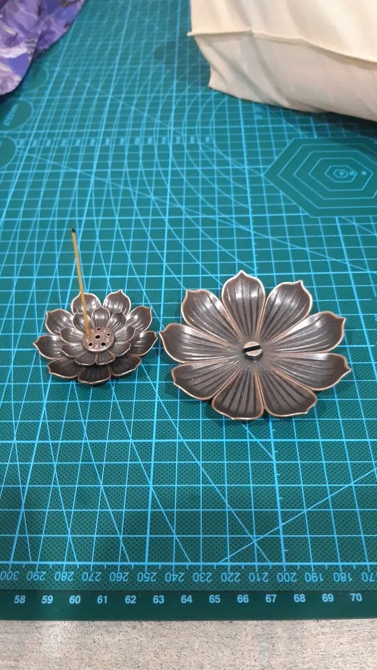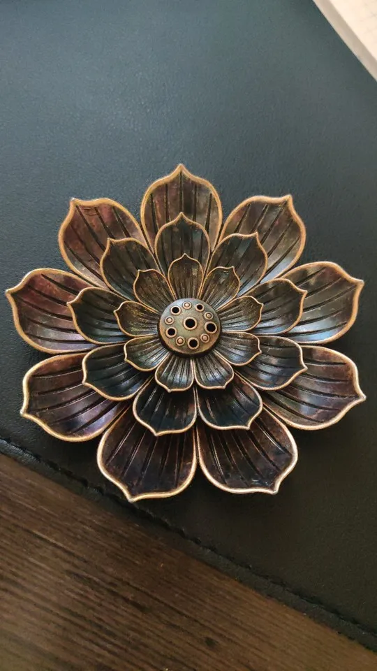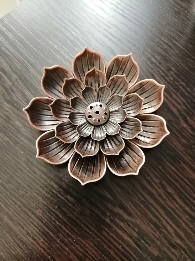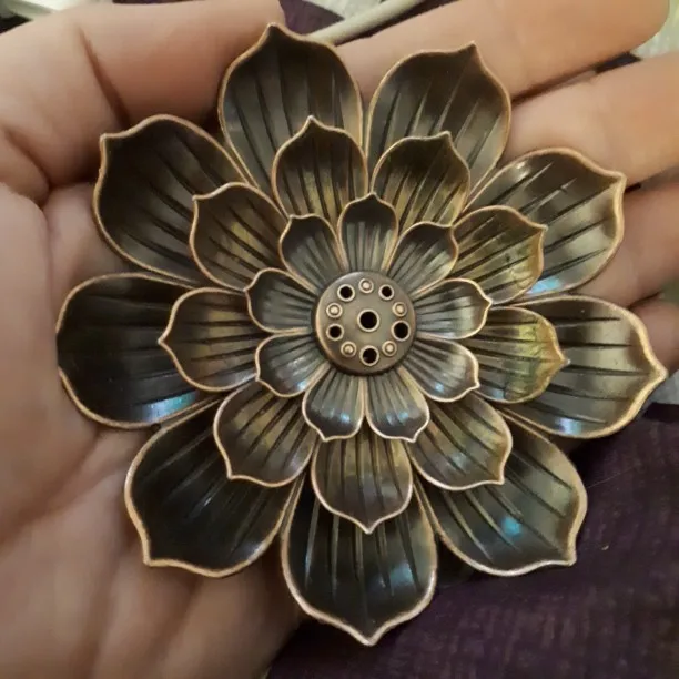 чень красивая вещь! состоит из 2 частей, нижняя это 1 блюдце с риской куда можно вставить ароматическую спираль, вторая часть это 2ряда лепестков и сердцевина это отверстия для палочек разного диаметра! отличное качество, РЕКОМЕНДУЮ! скорее всего закажу ещё 1 лотос для симметрии на столе!☝️