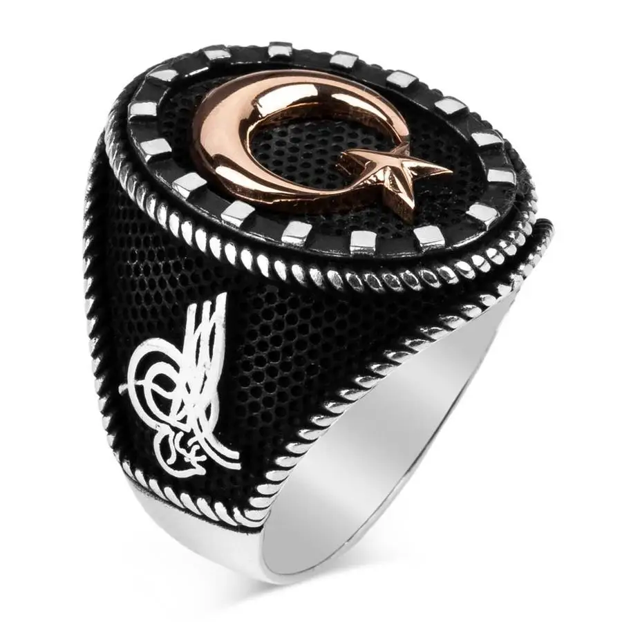 Высокое качество Османская тугра Луна Звезда 925 пробы Серебряное мужское кольцо элегантный впечатляющий очаровательный дизайн специальная роскошь отличное