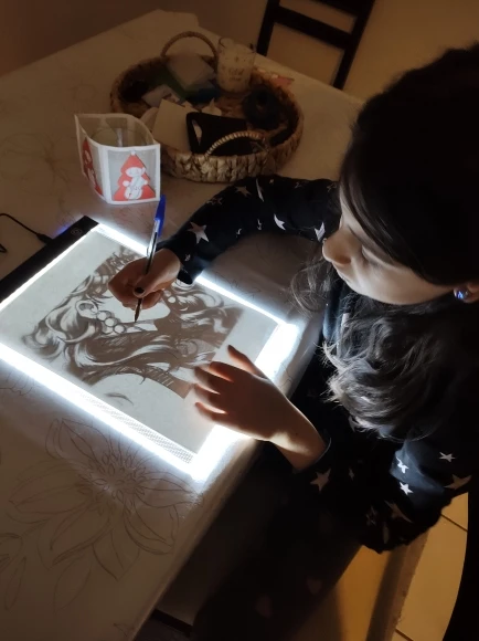 Отличный планшет. Заказала специально для внучки в подарок на Новый год. Внучке (6 лет) очень понравился. Весь вечер с удовольствием рисовала. Полезное, увлекательное занятие. Мы когда-то так в детстве срисовывали через оконное стекло. Не очень-то было удобно, а с планшетом хорошо. Заказывайте большой формат А4. Товар был надежно упакован. Пришёл в целости и сохранности.