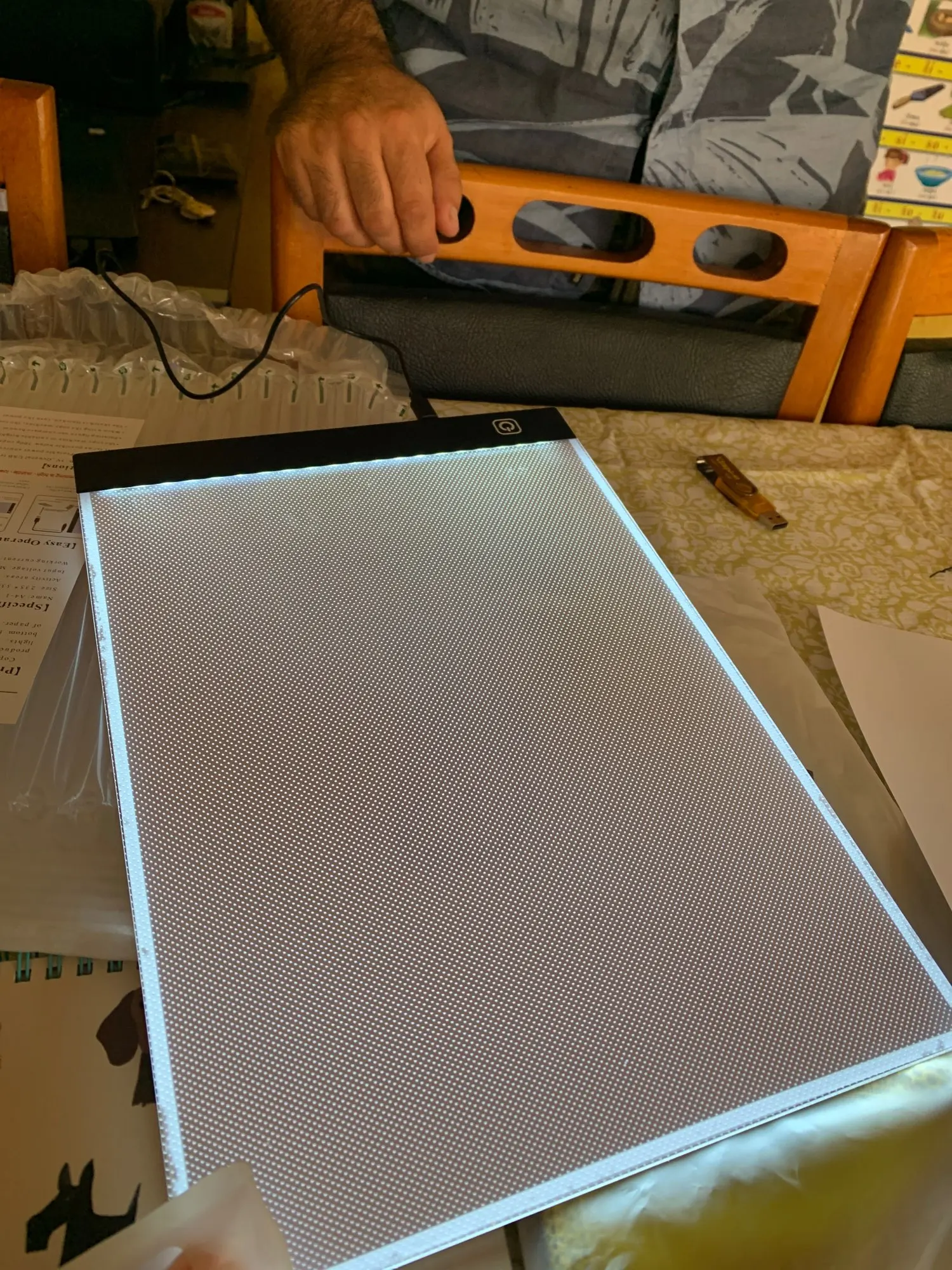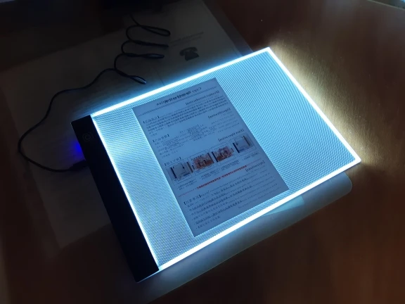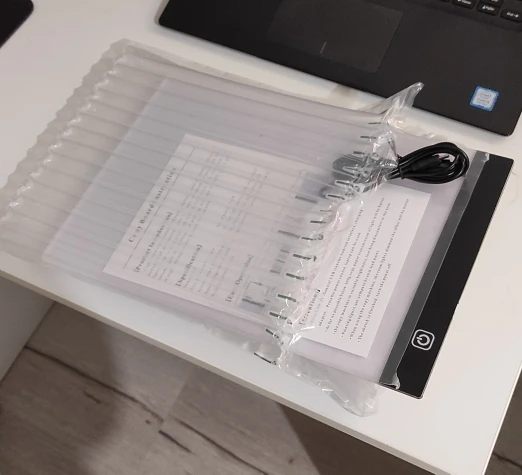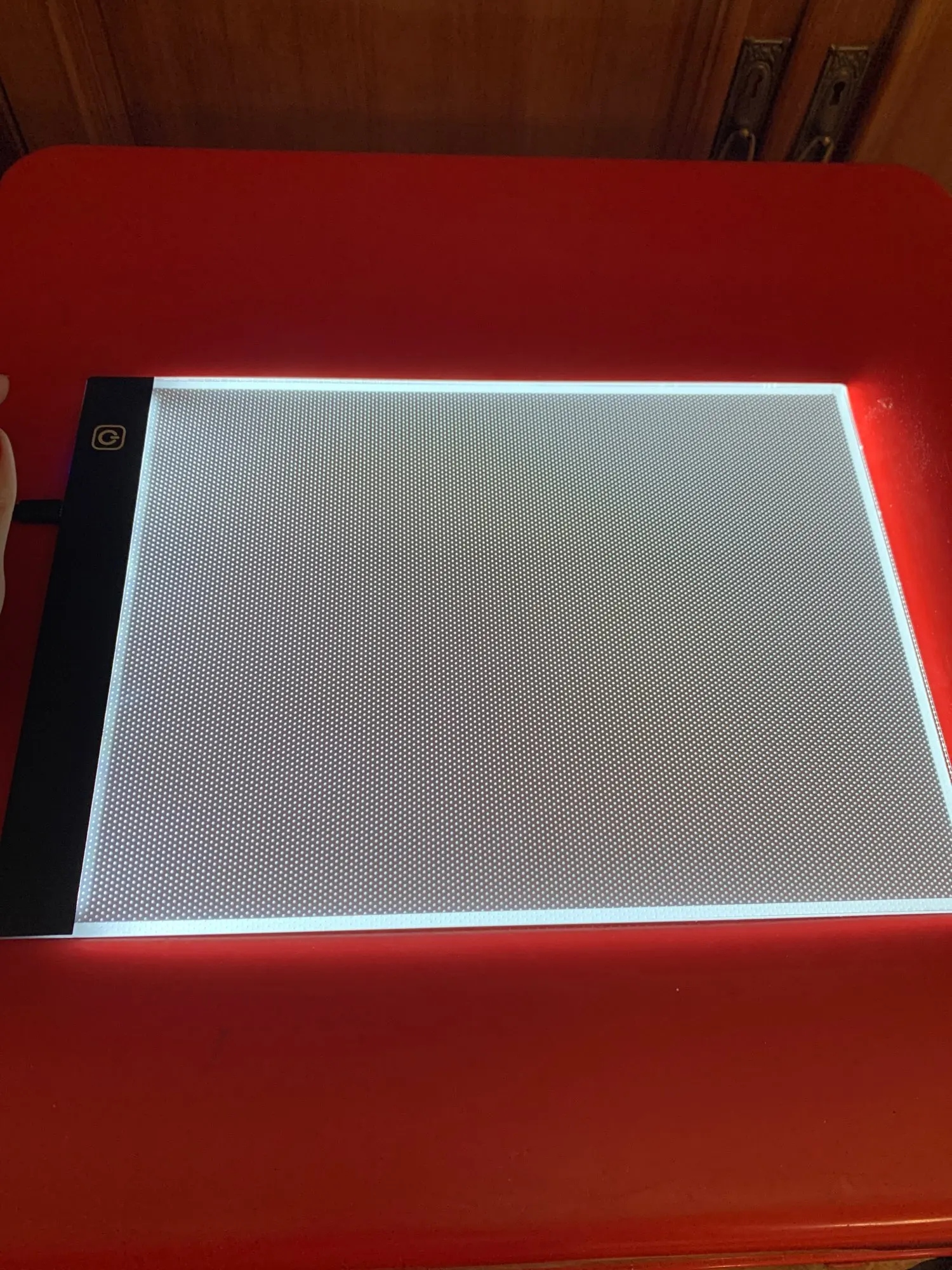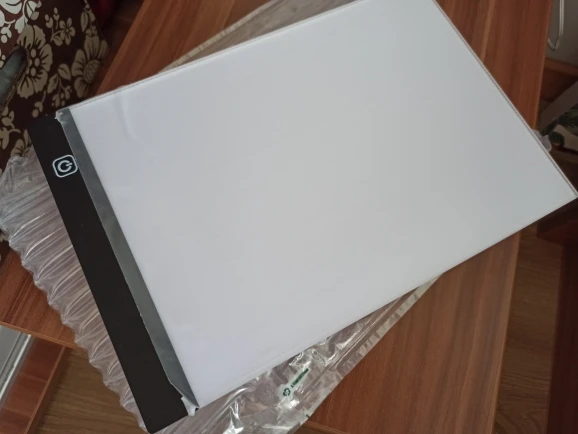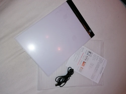 Безумно довольна заказом! это именно то, что я хотела! размер не соответствует А4, планшет немного меньше, но звезду снимать за это не буду. Диоды светят ярко, три уровня мощности, доставка меньше месяца, все упаковано на совесть