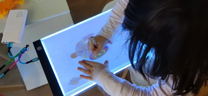 планшет суперский. есть несколько режимов яркости. можно переводить картинки даже тем деткам, кто не умеет рисовать.