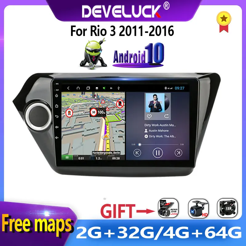 Автомагнитола 2DIN, Android 10,0, мультимедийный видеоплеер для Kia RIO 3 2011-2016, 4 Гб + 64 ГБ, стерео сабвуфер, GPS-навигация, 4G + Wifi, RDS