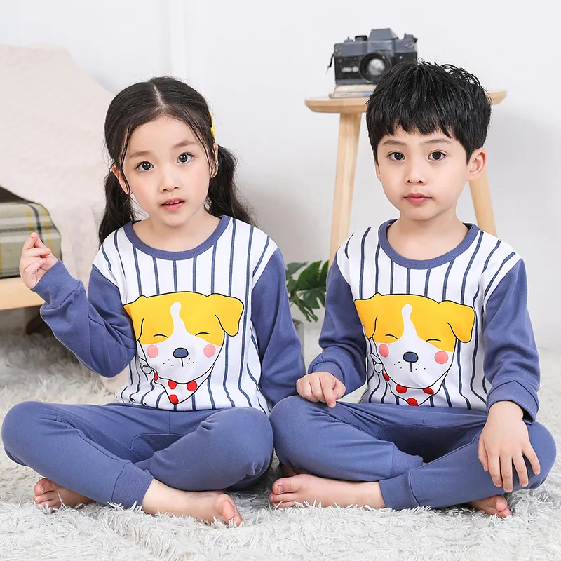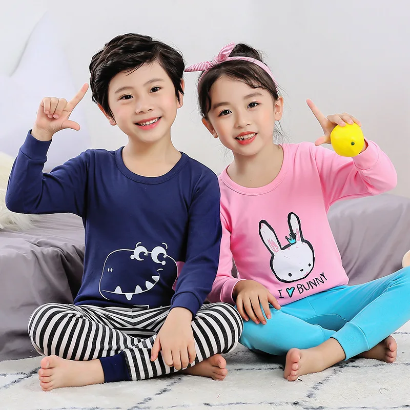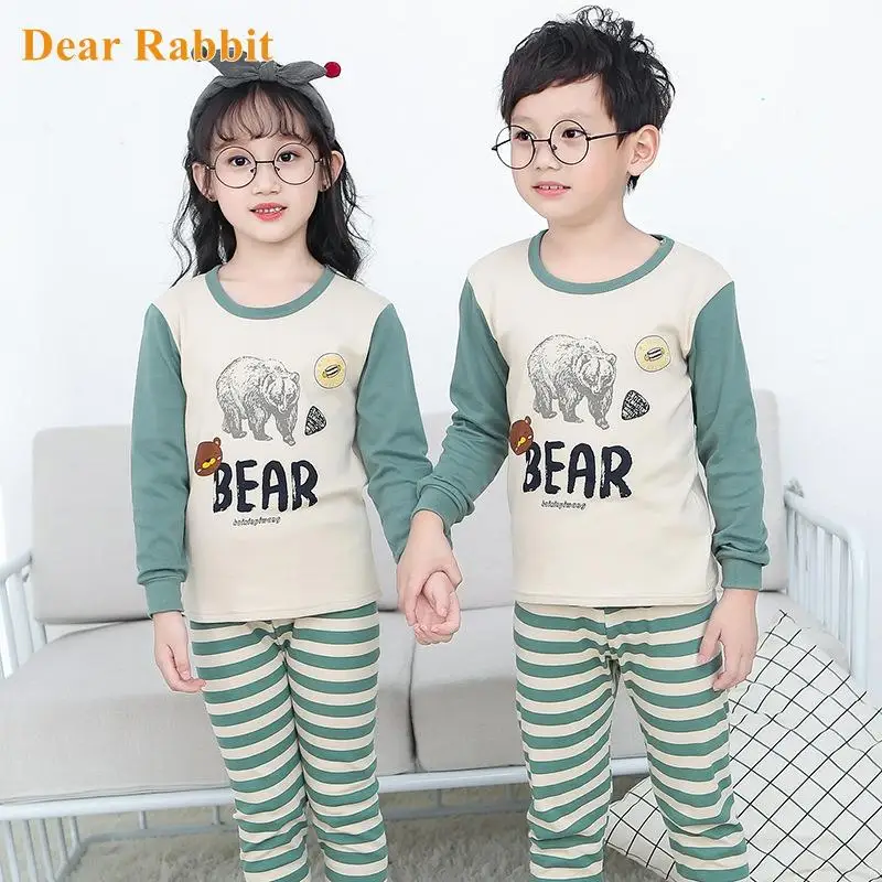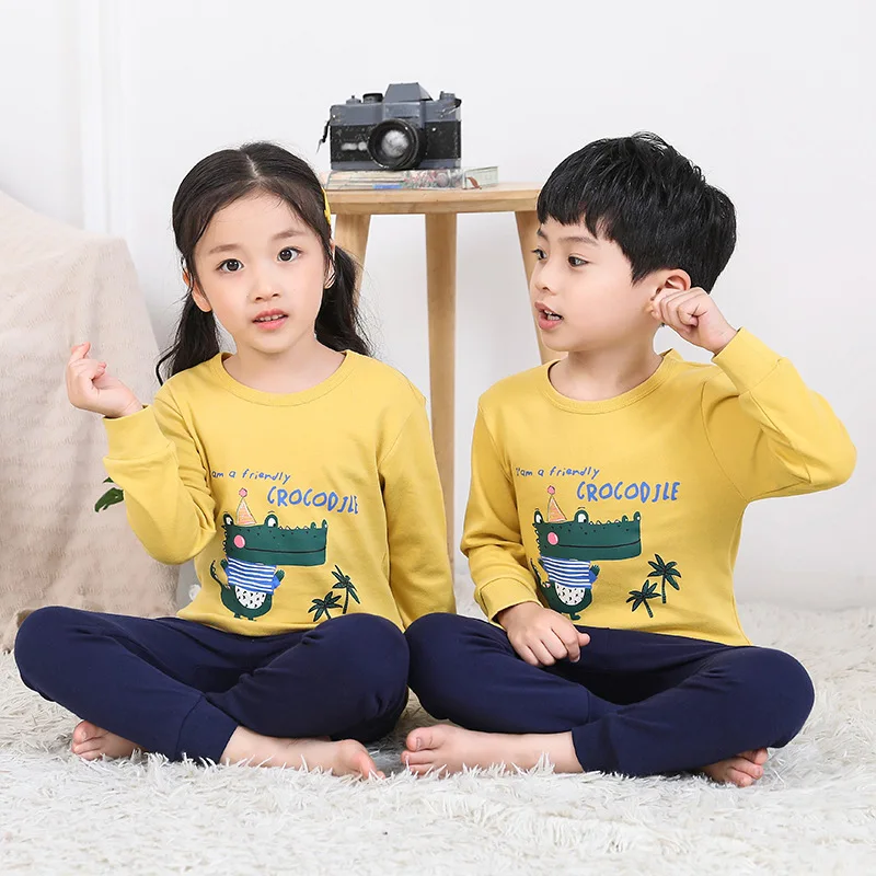 2022 г. Одежда для малышей Осенняя хлопковая одежда для сна для детей пижамные комплекты для мальчиков и девочек с рисунком динозавра детская одежда для сна, теплая куртка