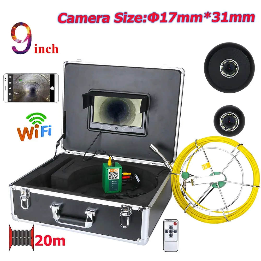 20 м 9 дюймов WiFi wireless17 мм промышленная труба канализационная инспекционная видеокамера система IP68 водонепроницаемая 1000 TVL камера с приложением фотографирование, запись видео