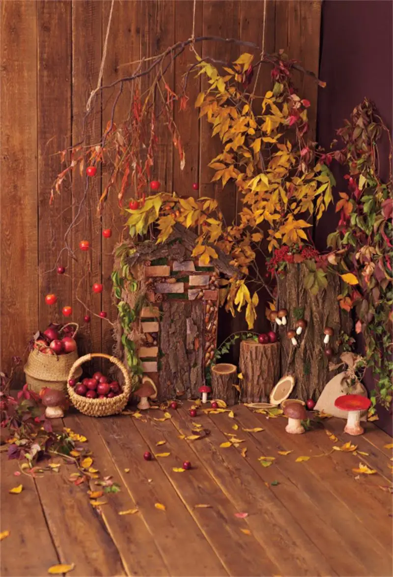 Laeacco осенний деревянный настенный пол Опаленные кленовые листья фруктовый склад детский портретный Фотофон для фотосъемки