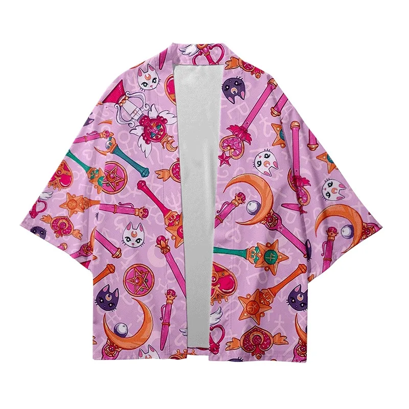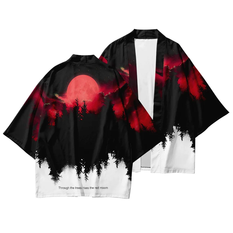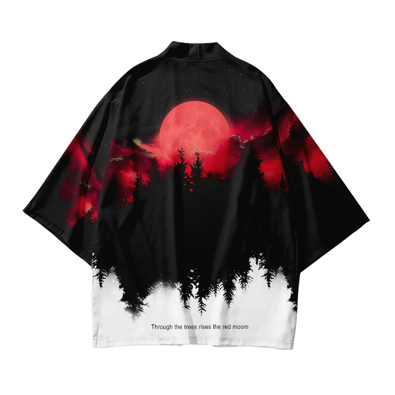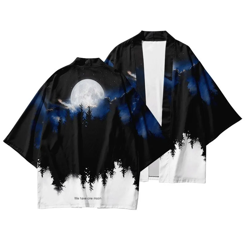 Кардиган-кимоно с Луной в японском стиле Харадзюку, мужская и женская куртка-кимоно в стиле лес, уличная одежда, костюм самурая