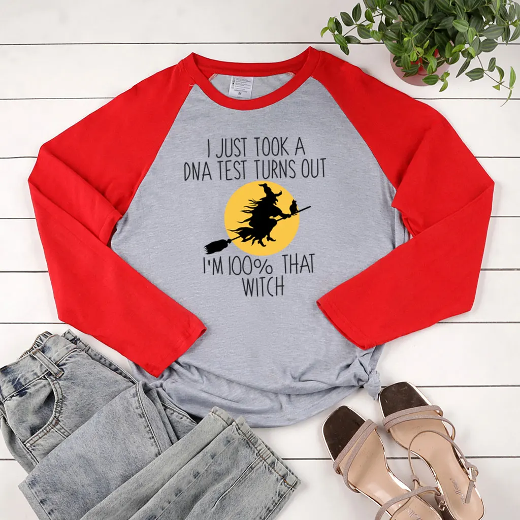 Я только что сделал тест на тест, Хэллоуин, футболки с длинными рукавами для женщин, Осень-зима, женские футболки, модные двухцветные топы на шпильке