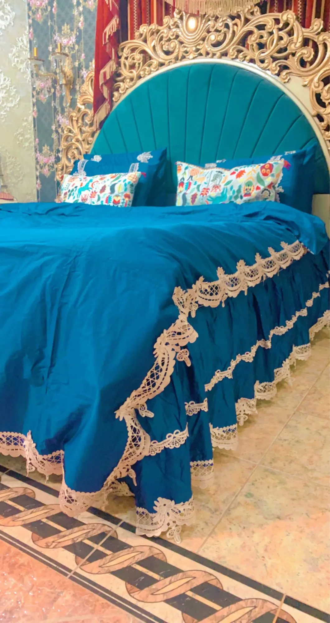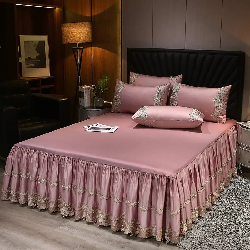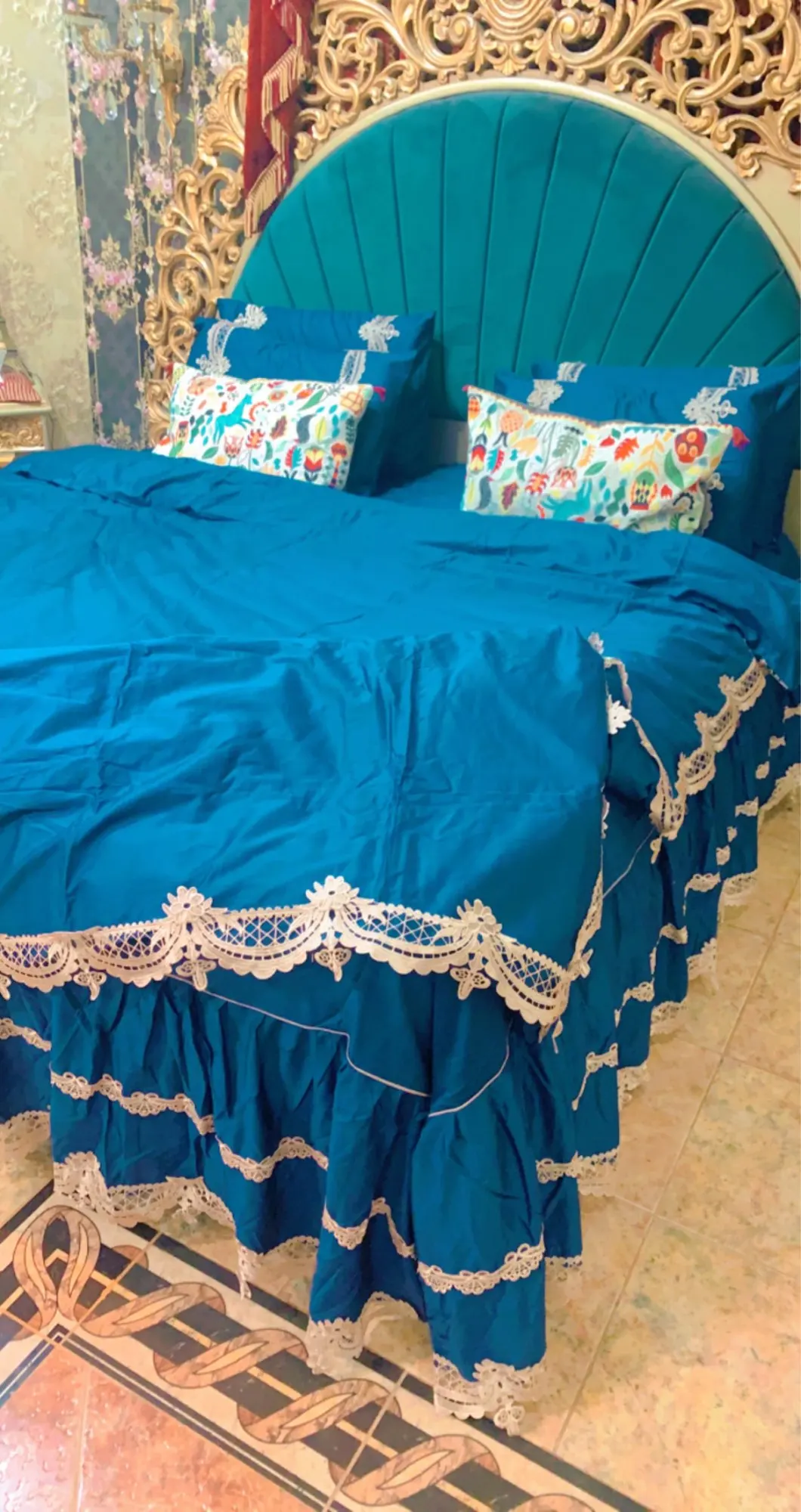 Элегантный шикарный кружевной мягкий комплект постельного белья из египетского хлопка королевская принцесса сплошной цвет пододеяльник простыня наволочка Королевский размер