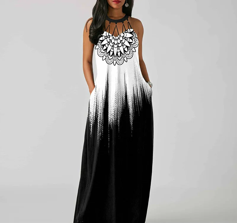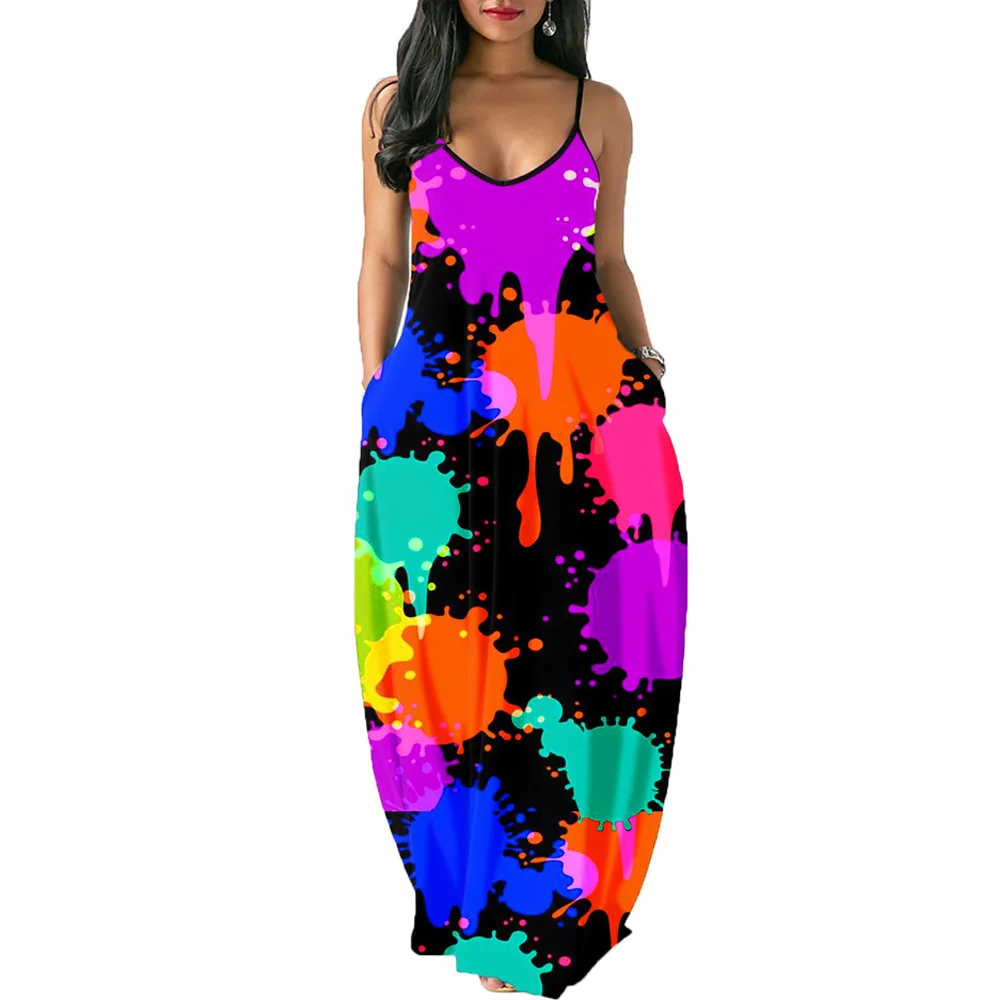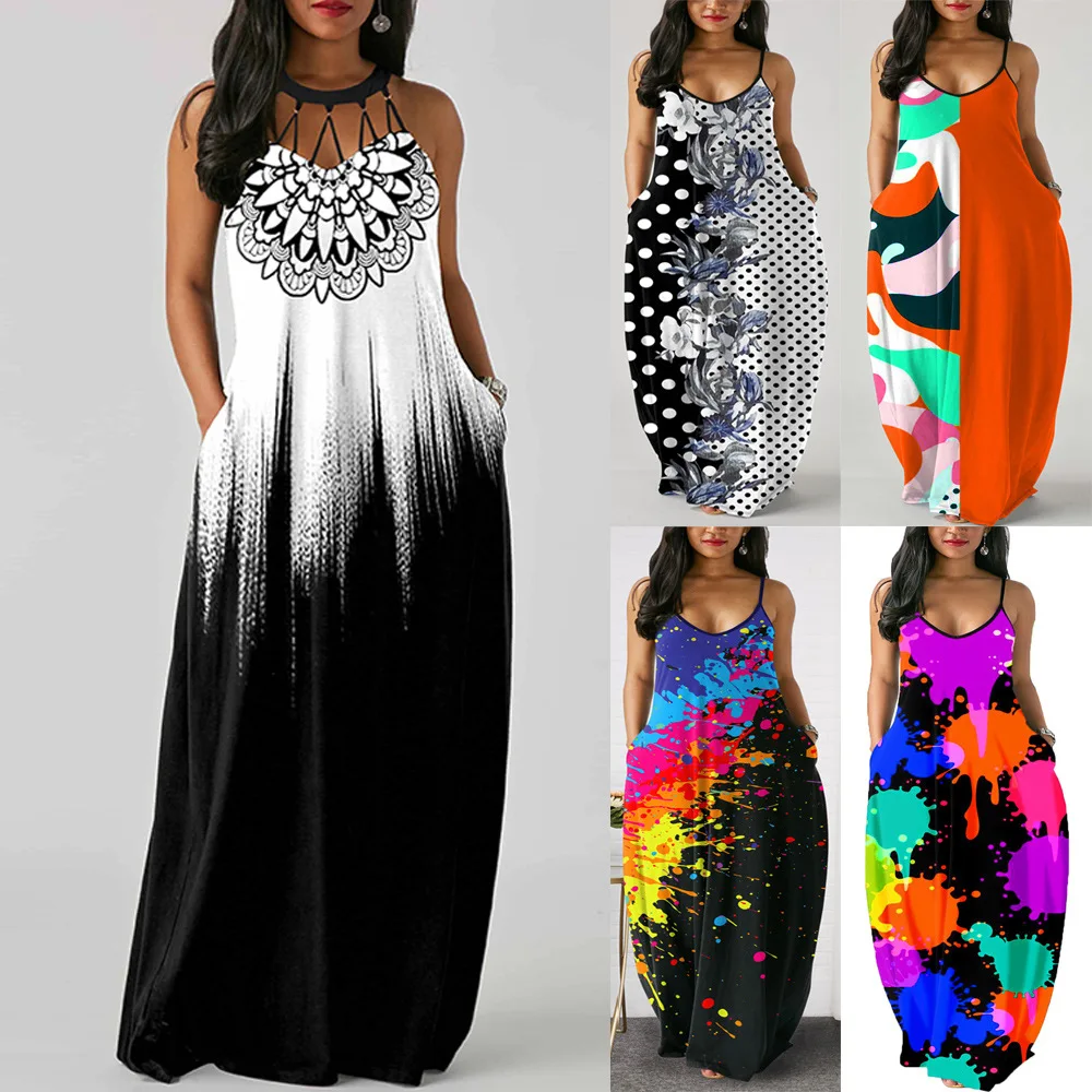 2020 летнее сексуальное платье в африканском стиле с принтом без рукавов и карманами, женское длинное платье