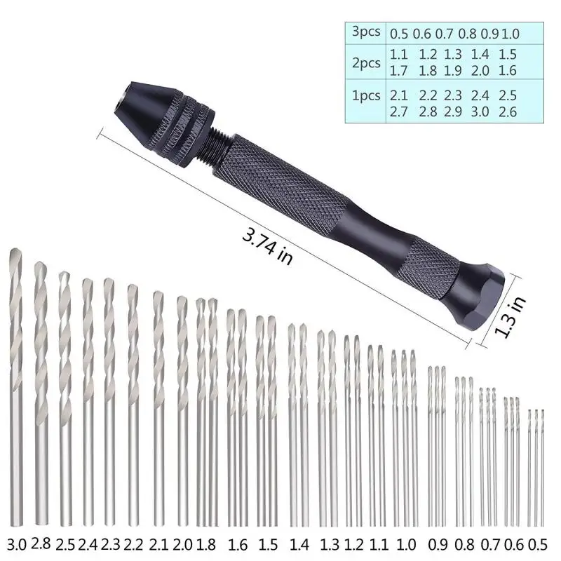 Набор ручных спиральных сверл, 49 шт., Прецизионная Шпилька, тиски, дрель для хобби с моделью, набор спиральных ручных сверл для самостоятельного вращающегося сверления