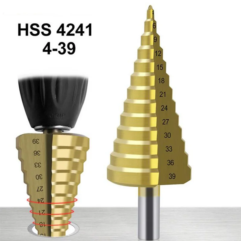 Ступенчатые сверла с титановым покрытием, сверла из быстрорежущей стали для металла, дерева, 4-39 мм