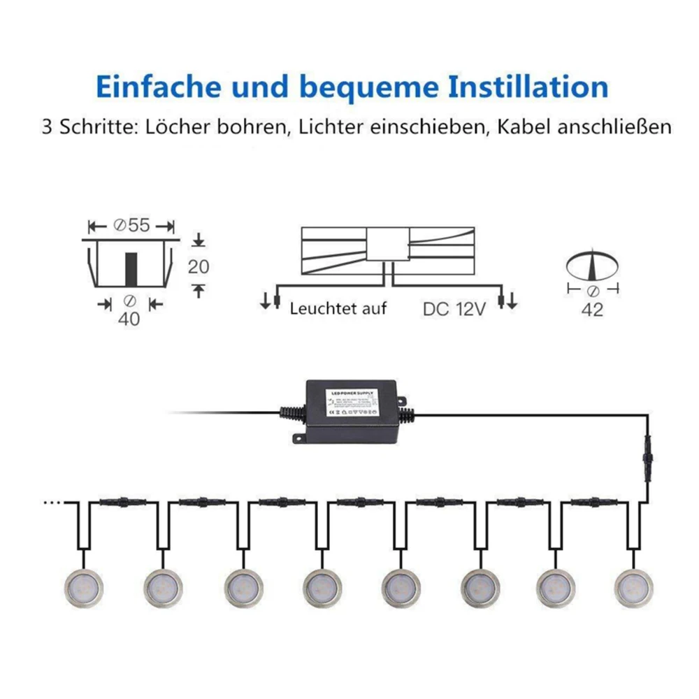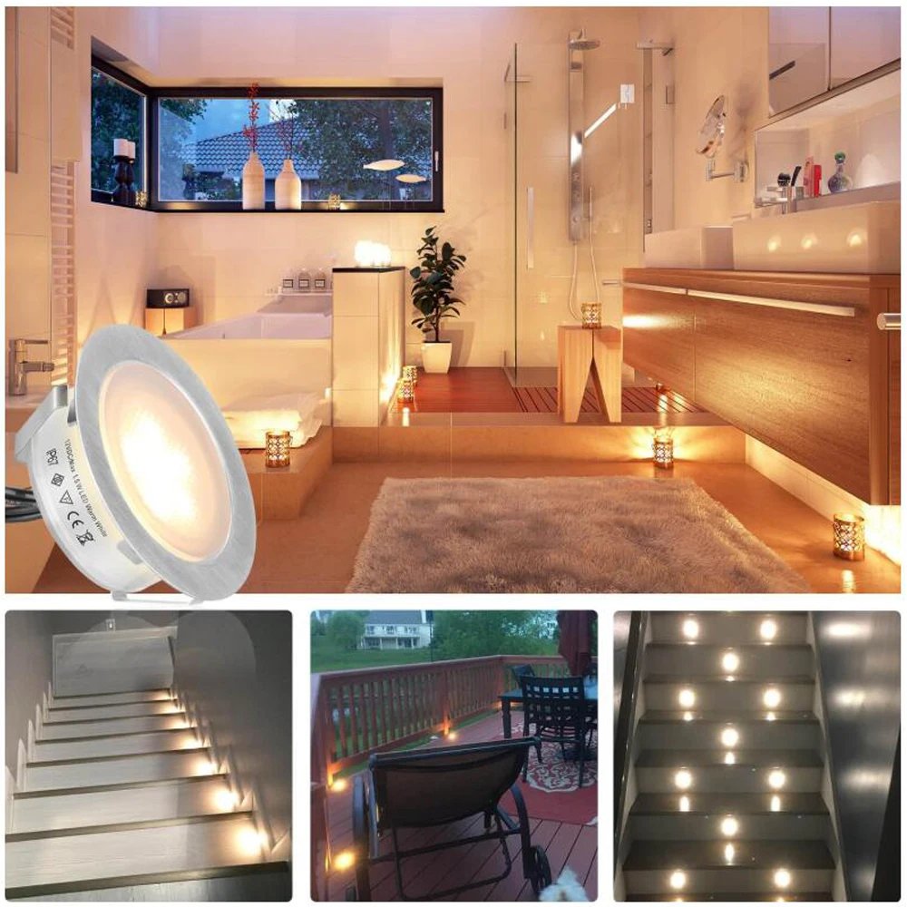 Встраиваемый светодиодный светильник из нержавеющей стали, комплект водонепроницаемого напольного освещения для ландшафта, лестницы, 12 В постоянного тока, IP67