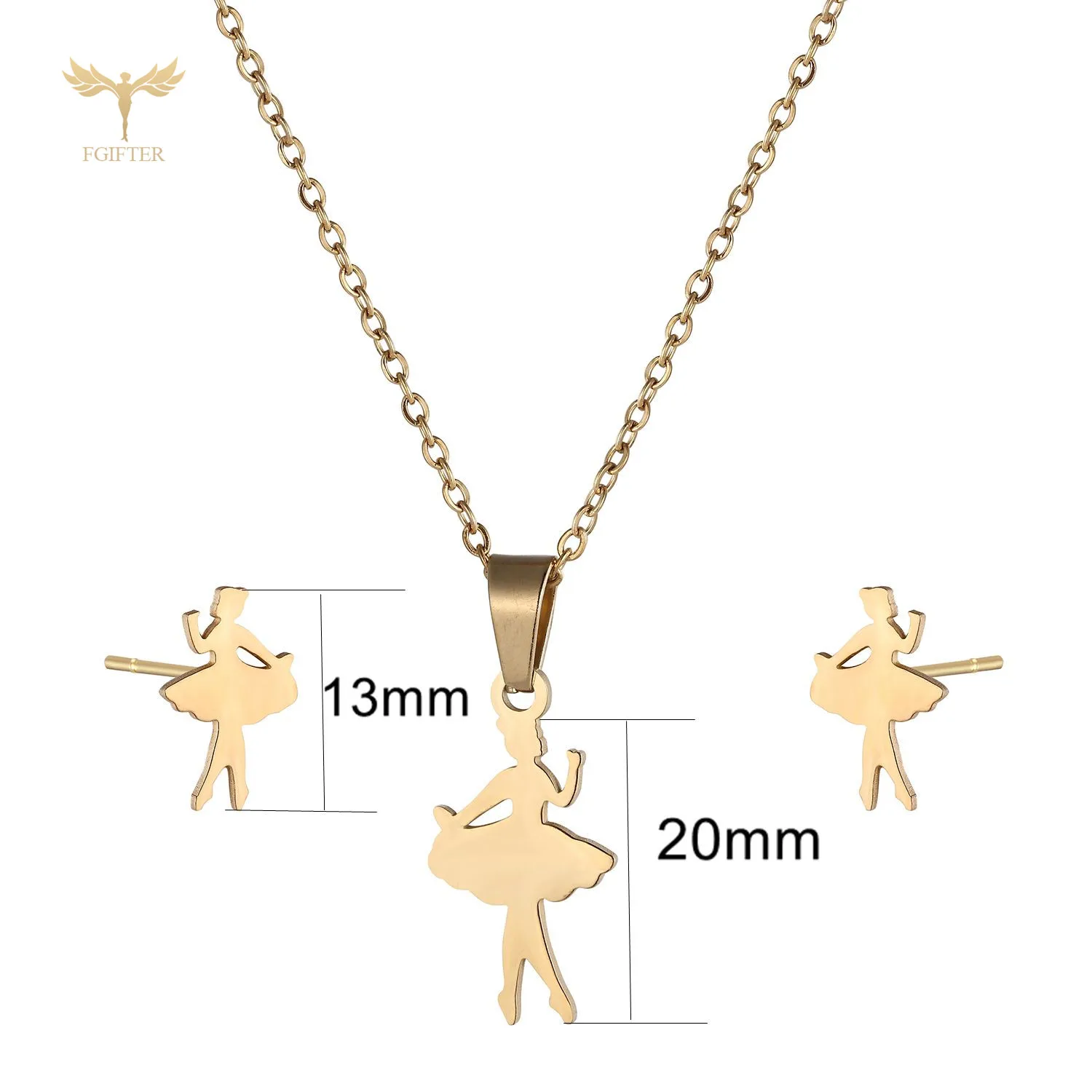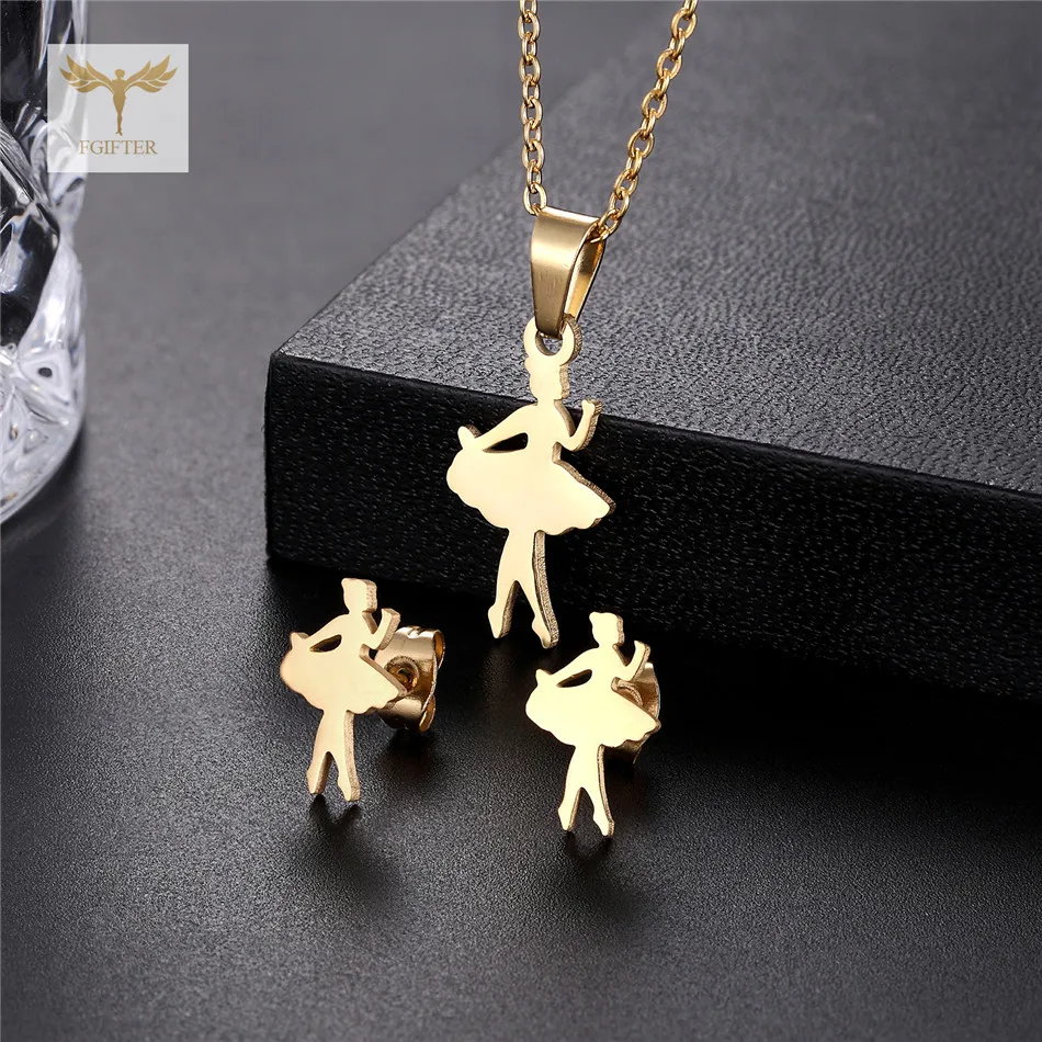Новый Золотой Балет Танцор Ожерелье Серьги для Женских Аксессуары Из Нержавеющей Стали Fairy Ожерелье Ухо Шпилька Мода Ювелирных Изделий Набор