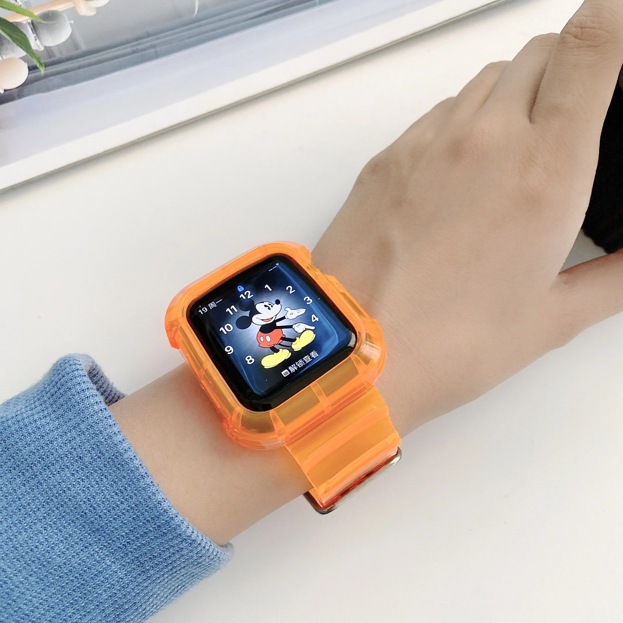 Ремешок силиконовый прозрачный для Apple Watch Series 7 6 5 4 3 2 1, водонепроницаемый браслет для Iwatch 7 41 мм 38 мм 42 мм, 45 мм