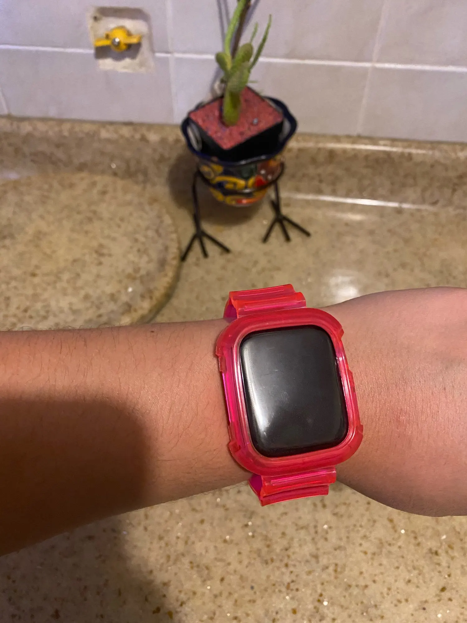 Выглядит очень большим и пластифицированным, хорошо подходит для apple watch серии 1