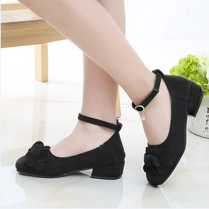 От 5 до 12 лет кожаные туфли принцессы с ремешком на щиколотке для больших детей; Цвет красный, черный, розовый; Для детей-подростков; Для школьниц; Замшевые туфли на высоком каблуке для учащихся; Вечерние и свадебные туфли для танцев; Новинка 2020 года