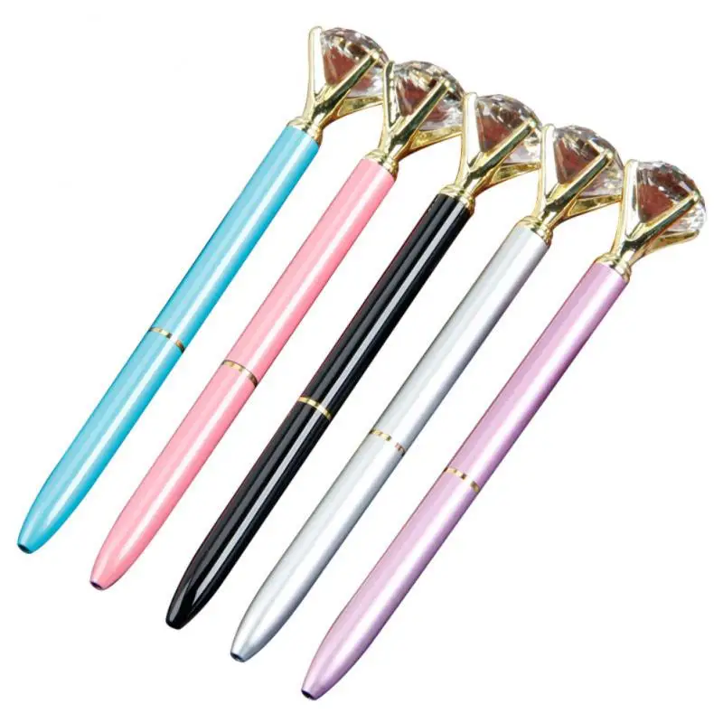 Новый Большой Карат флеш-накопитель со стразами драгоценный камень шариковое кольцо для пера свадебное офисное металлическое кольцо шариковая ручка розовое золото серебро розовый фиолетовый