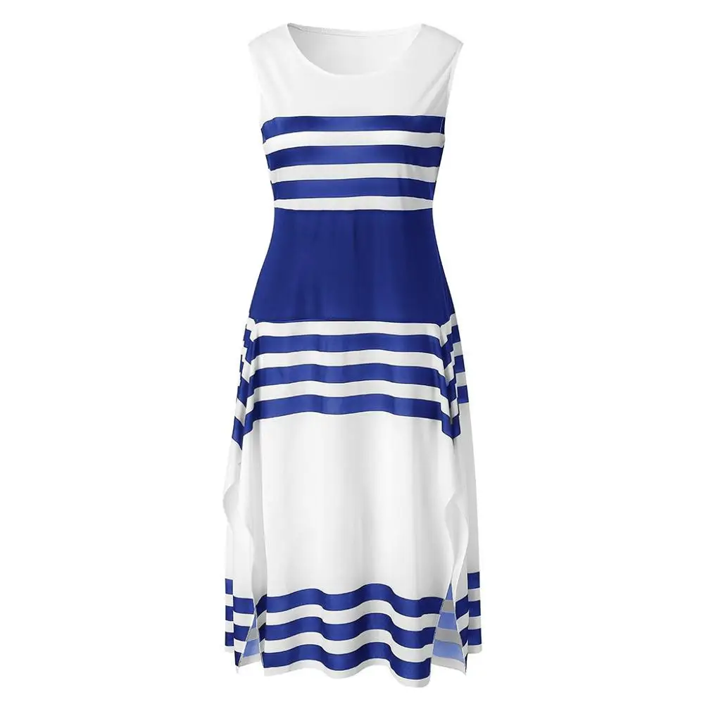 Женское платье в полоску, без рукавов, с круглым вырезом, 2021