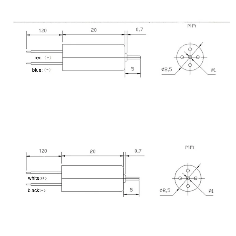 Выходной вал: около 1 мм (подходит для пропеллера 1 мм)