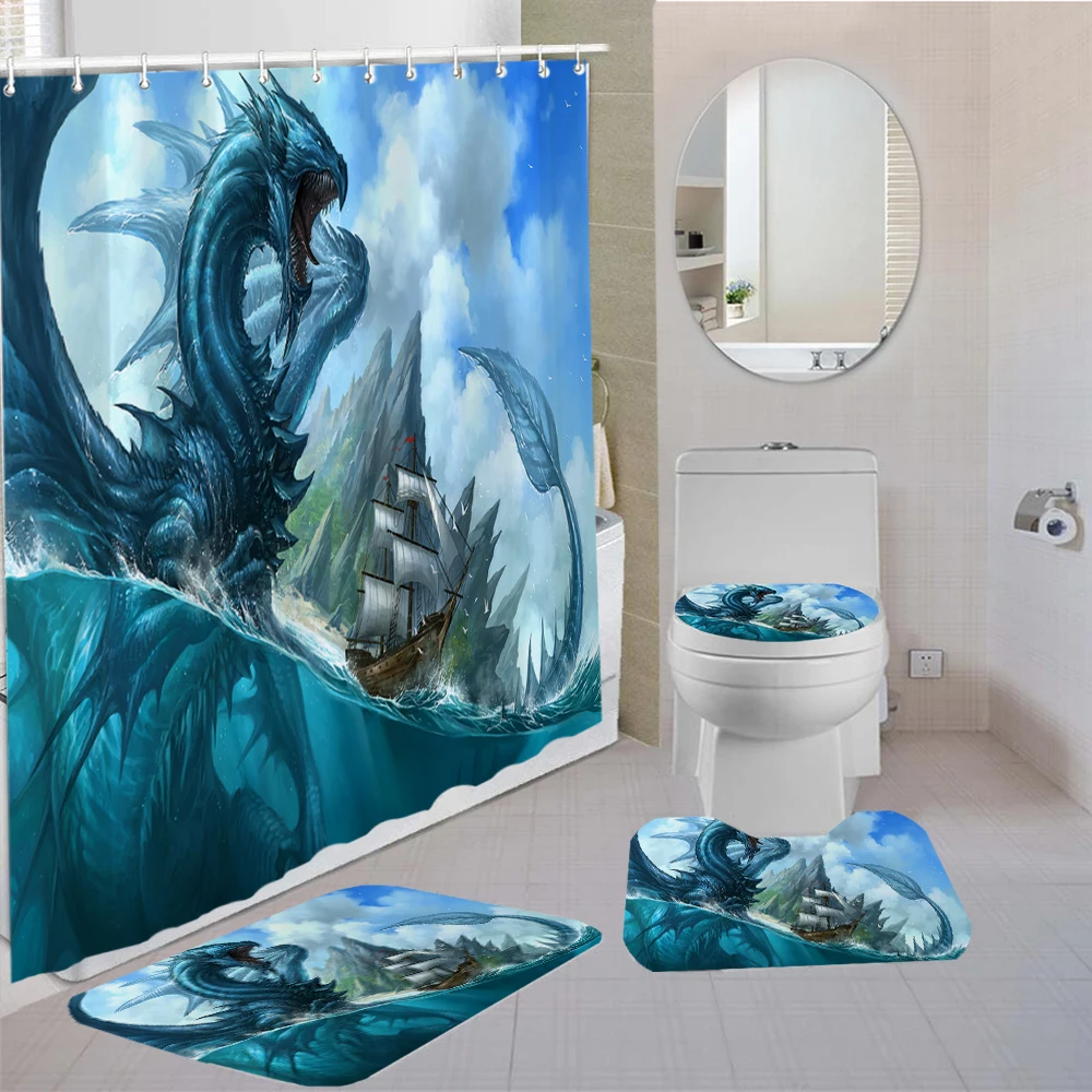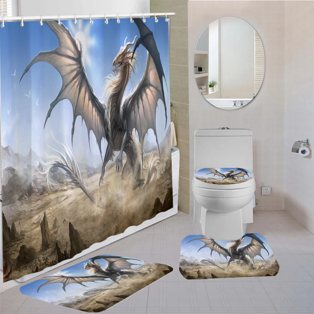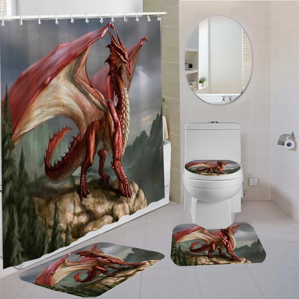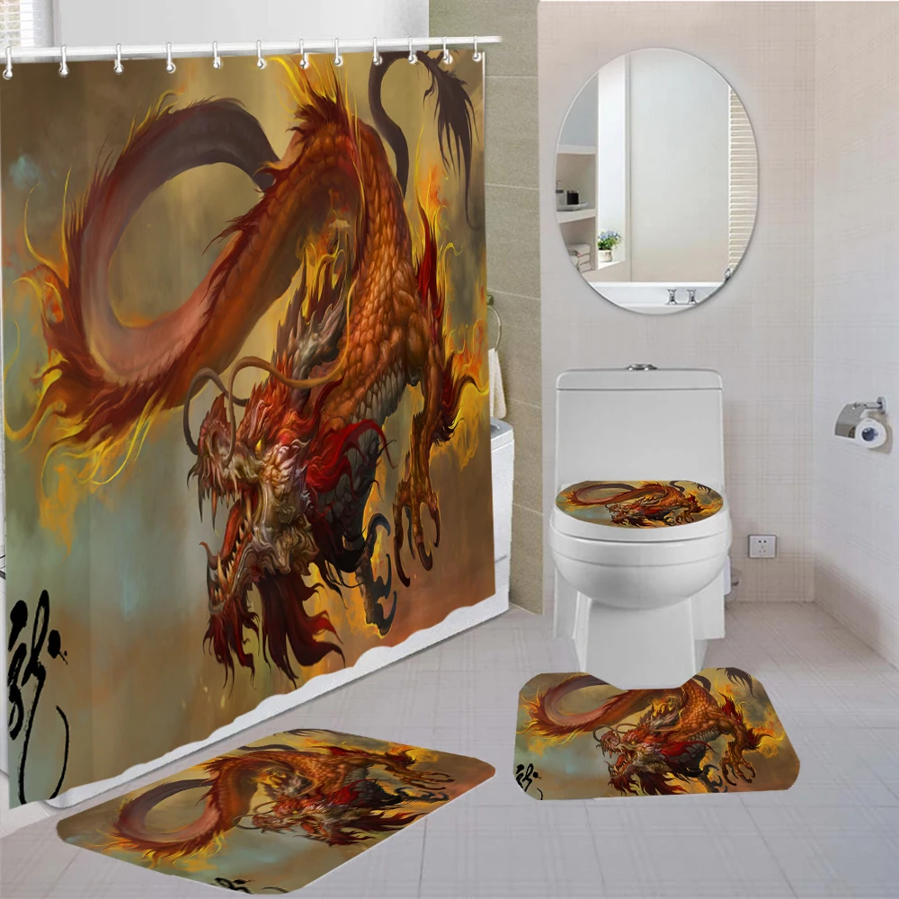 Набор штор для душа в китайском стиле с рисунком летающего дракона, 34 шт., коврик для туалета, нескользящий комплект для спальни с 3D принтом для украшения ванной комнаты