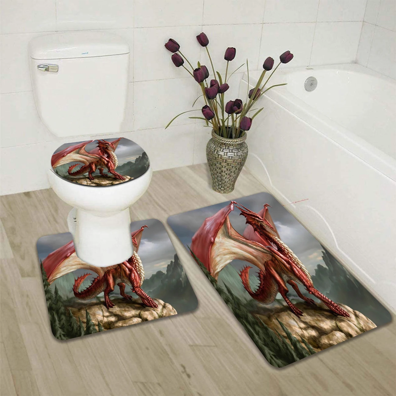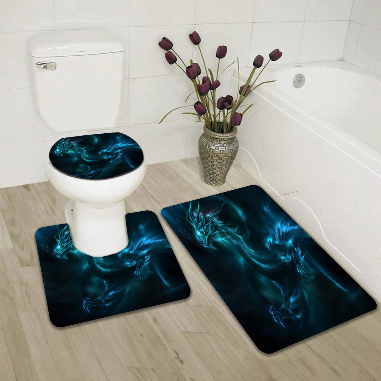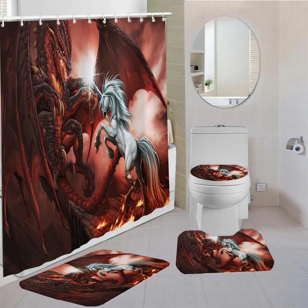 Набор штор для душа в китайском стиле с рисунком летающего дракона, 34 шт., коврик для туалета, нескользящий комплект для спальни с 3D принтом для украшения ванной комнаты