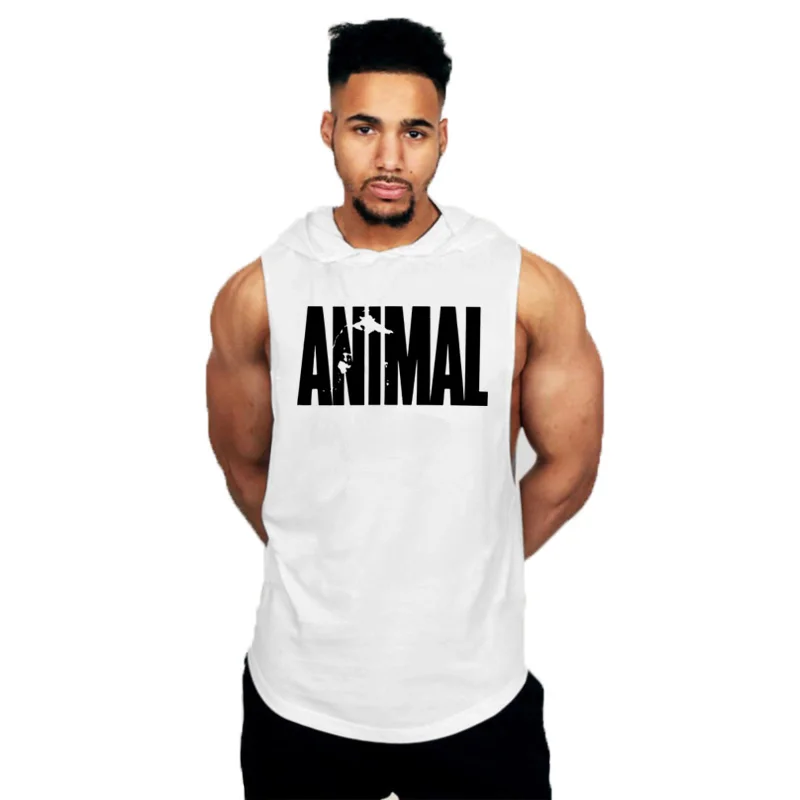 Мужская хлопковая майка для фитнеса, с капюшоном, для занятий спортом